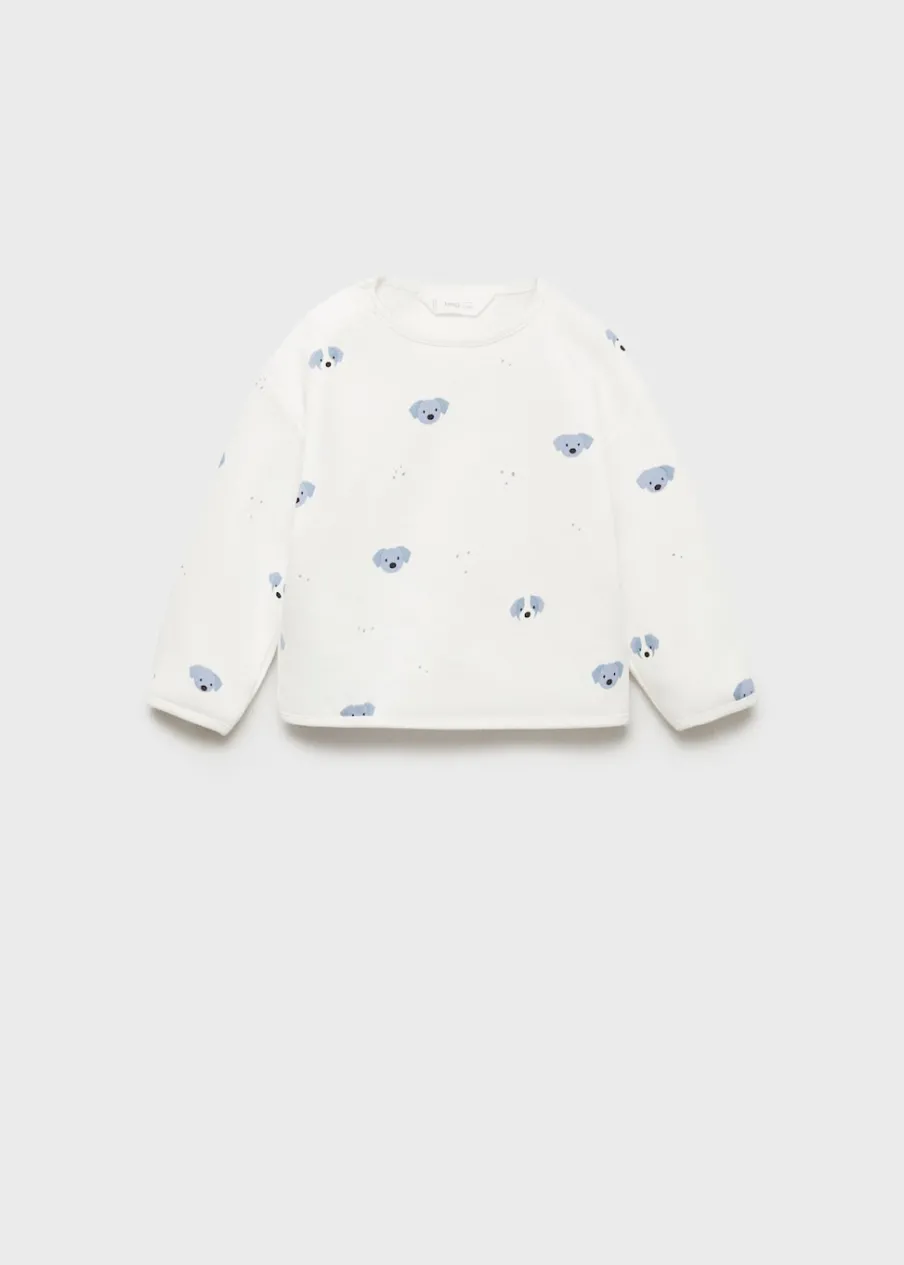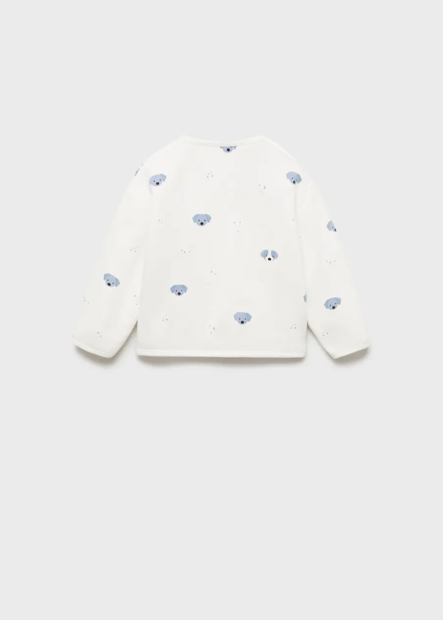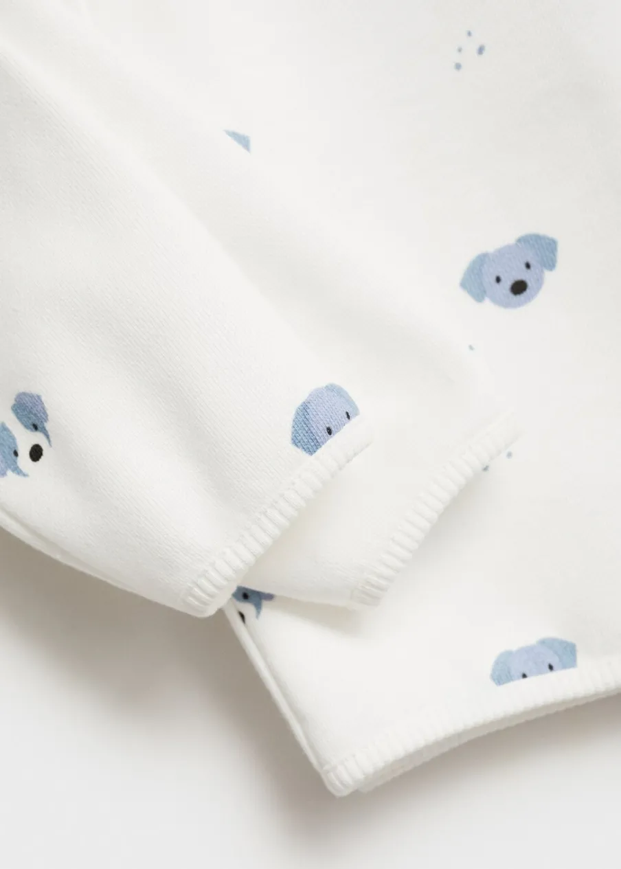 Bawełna 100%. Okrągły dekolt. Długi rękaw. Wzór w psy. Zapięcie na guziki na ramieniu.