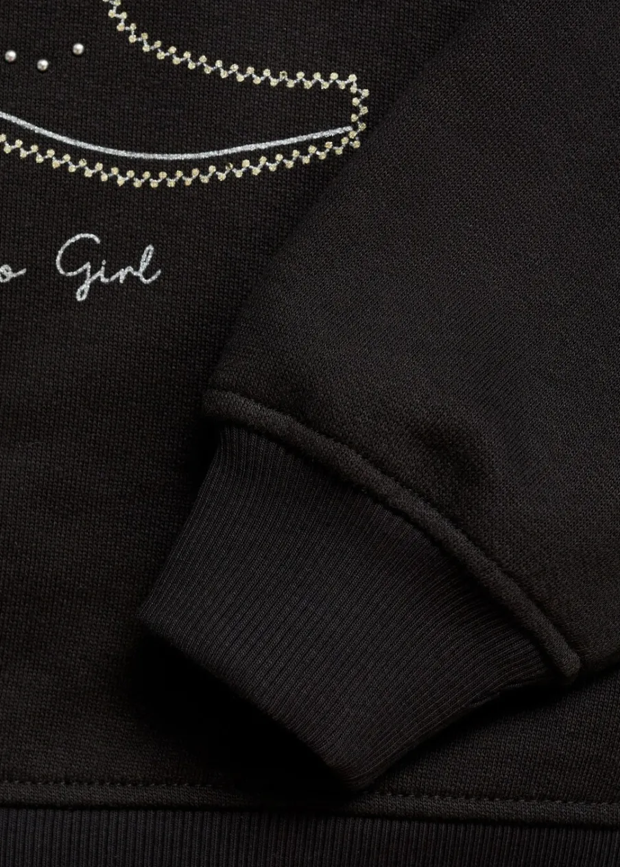 Powrót do szkoły. Tkanina z bawełną. Okrągły dekolt. Haftowany detal. Długi rękaw. Bez zapięcia.
