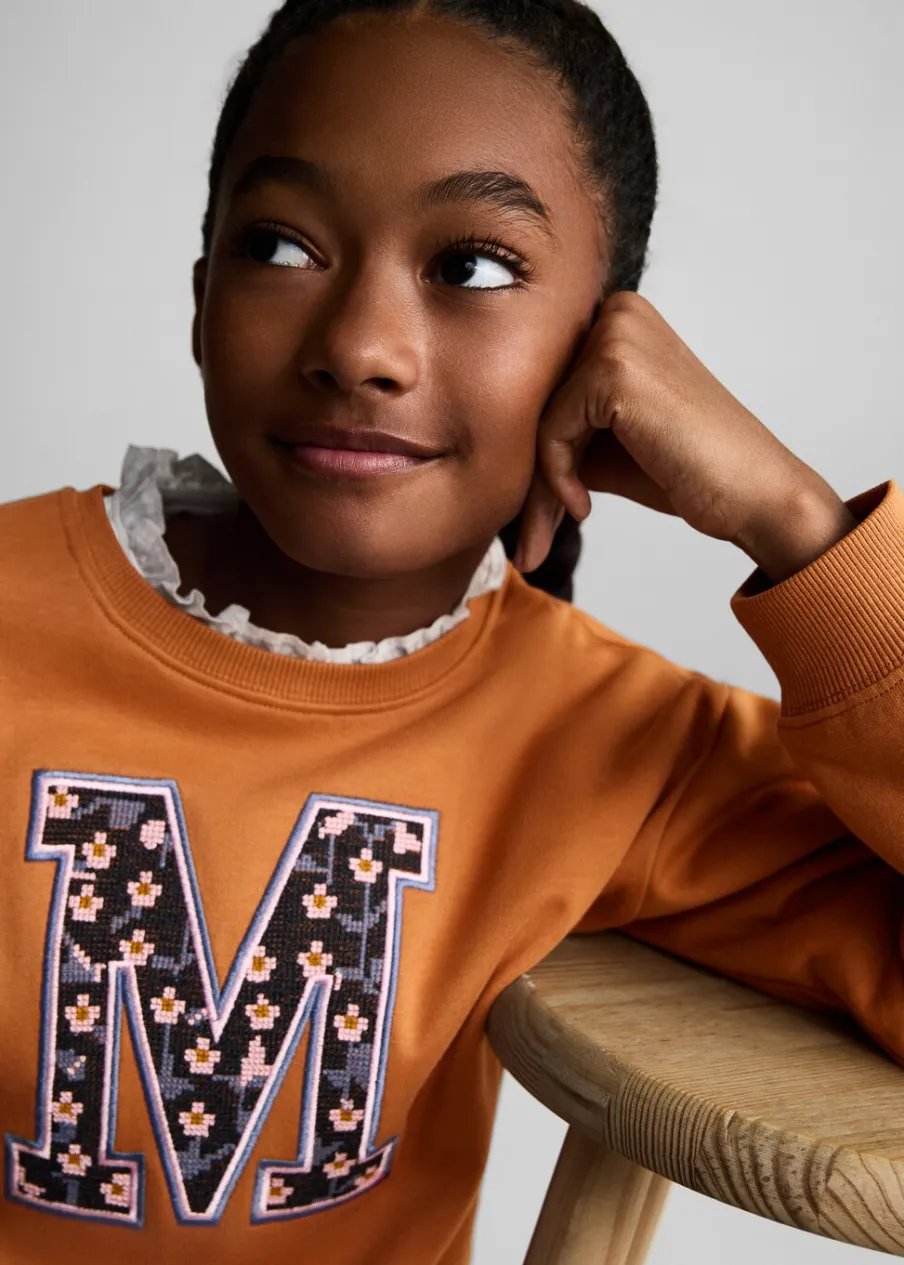 Bawełna 100%. Model prosty. Haftowany detal. Ozdobny motyw kwiatowy. Okrągły dekolt. Długi rękaw. Bez zapięcia.