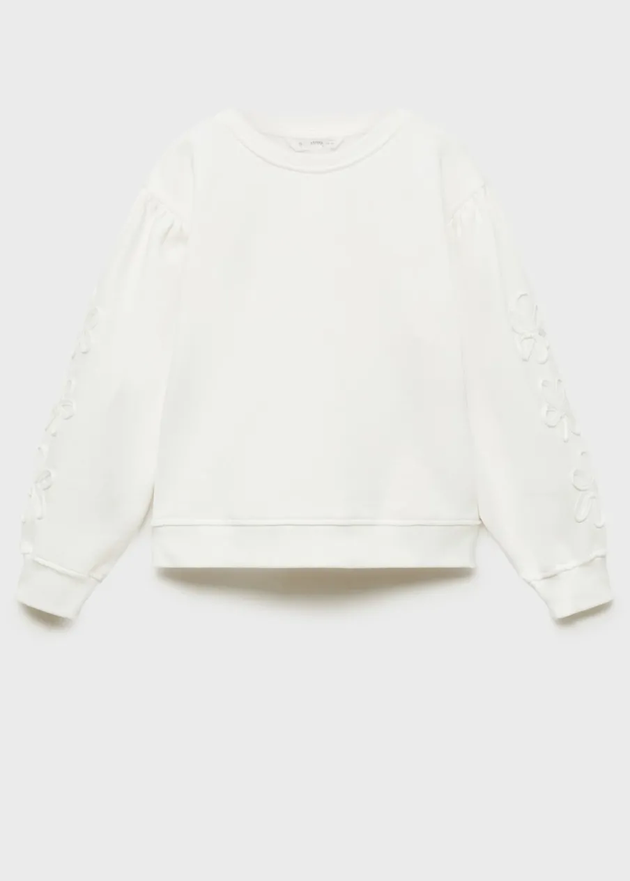 Bawełna 100%. Model prosty. Haftowany detal. Kwiatowy haft. Okrągły dekolt. Długi rękaw. Bez zapięcia.