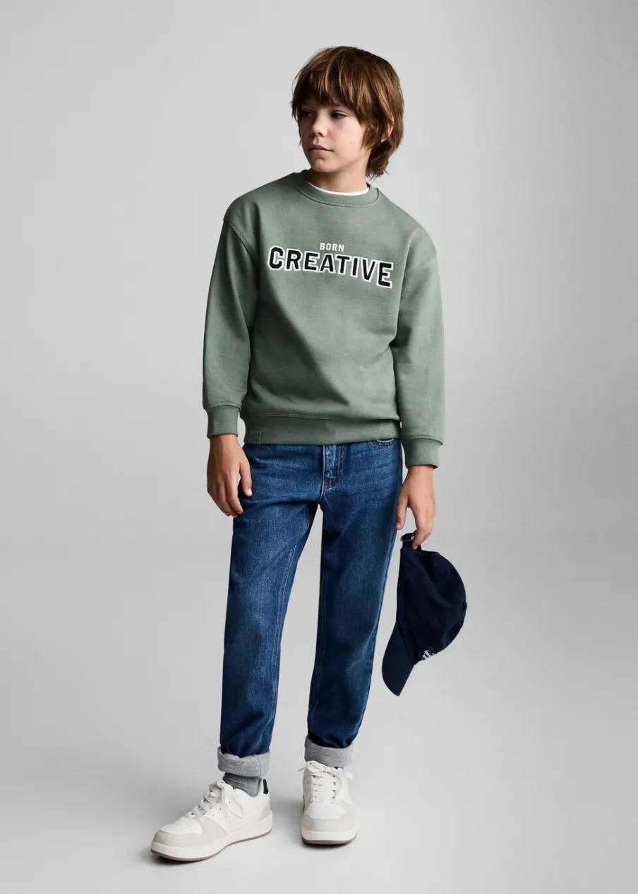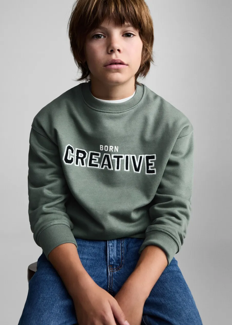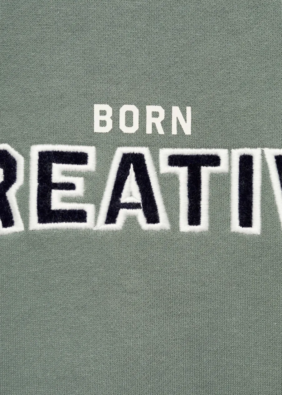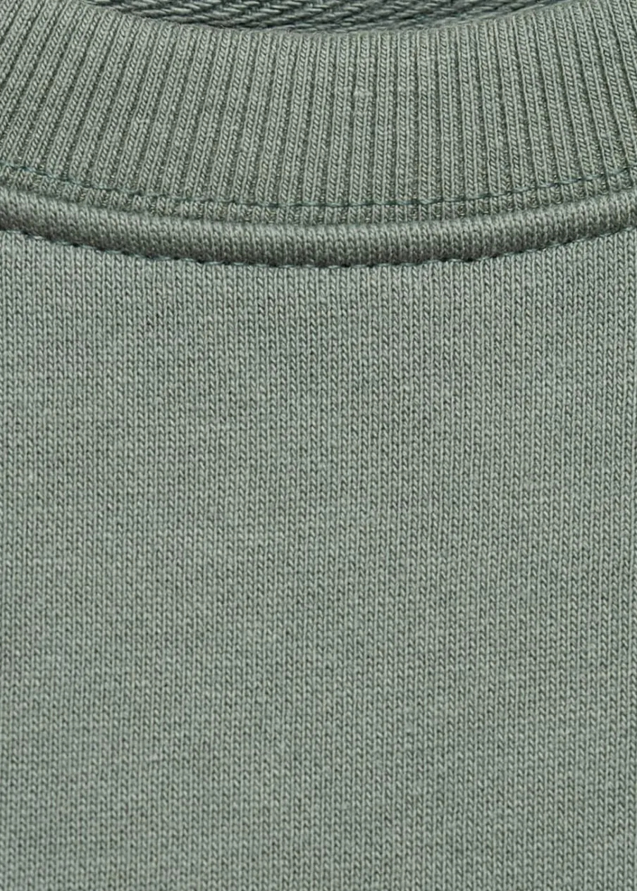 Tkanina z bawełną. Model prosty. Haftowany detal. Okrągły dekolt. Długi rękaw.