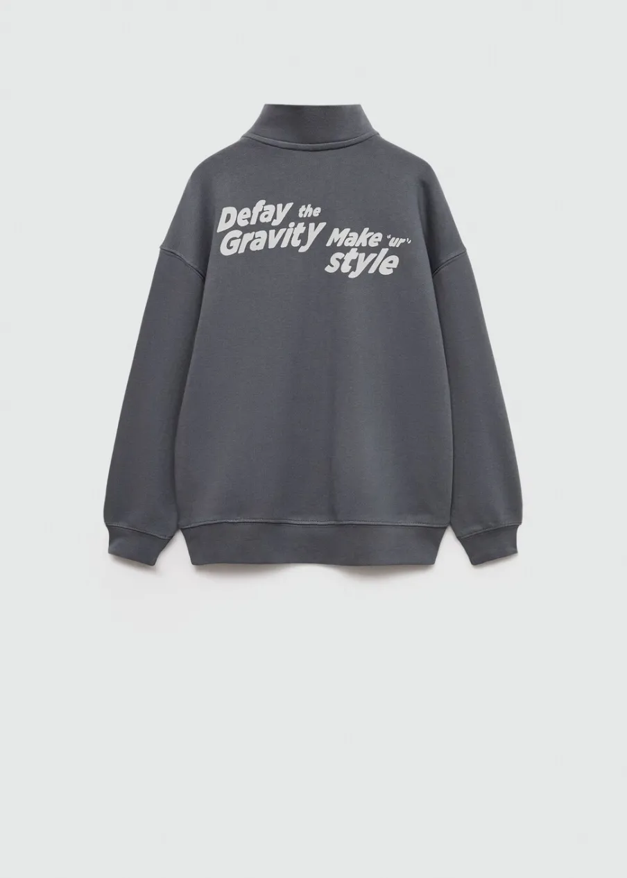 100% bomull. Model prosty. Wzór z tyłu. Długi rękaw. Nadruk. Zapięcie na zamek na dekolcie.
