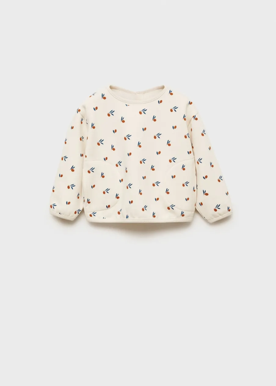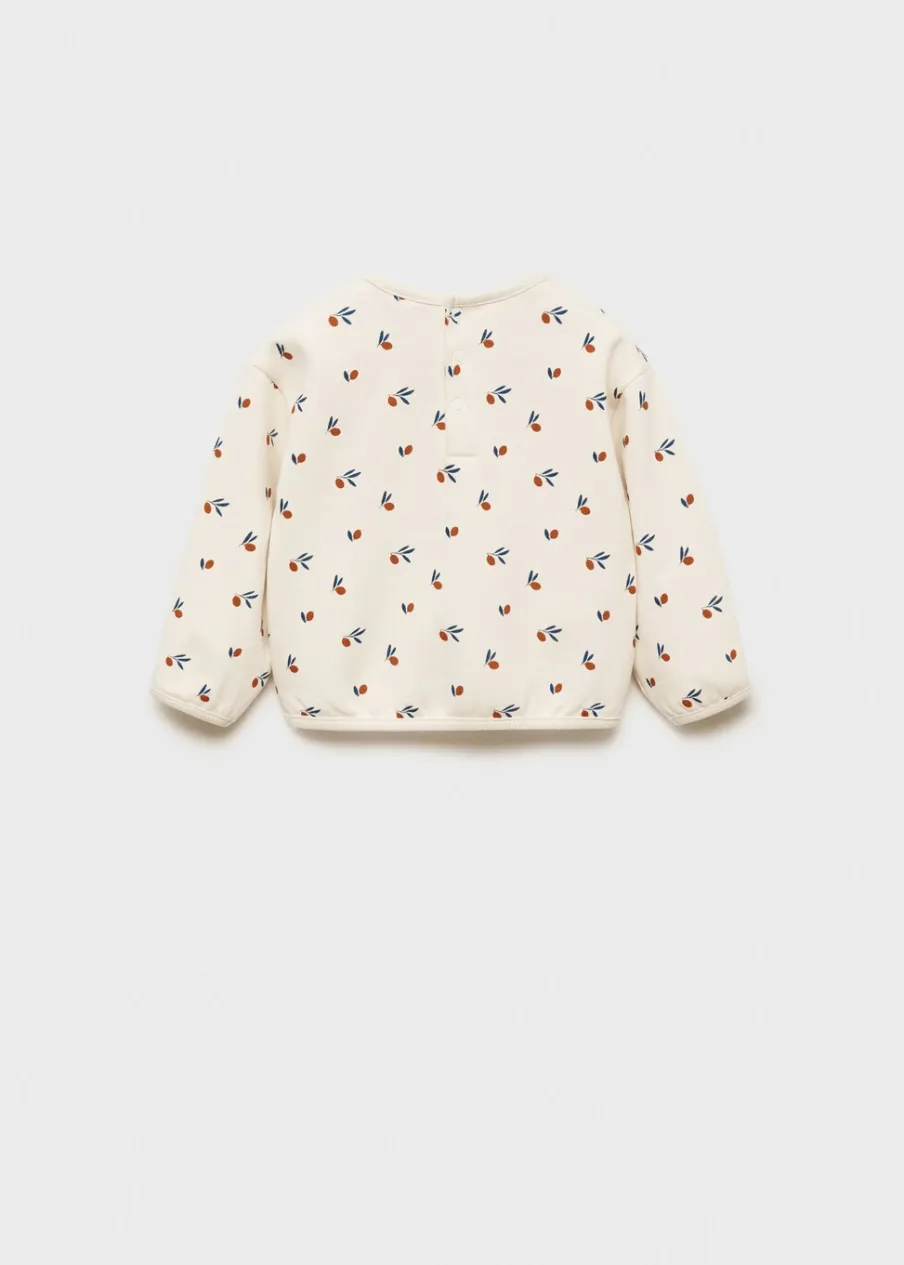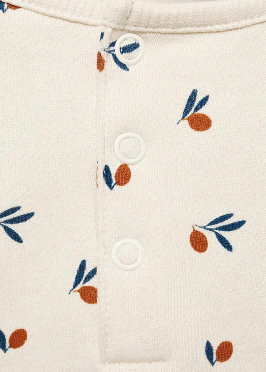 Bawełna 100%. Okrągły dekolt. Długi rękaw. Wzorzysty. Zapięcie z tyłu na zatrzaskowe guziki.