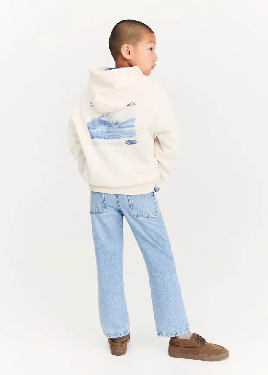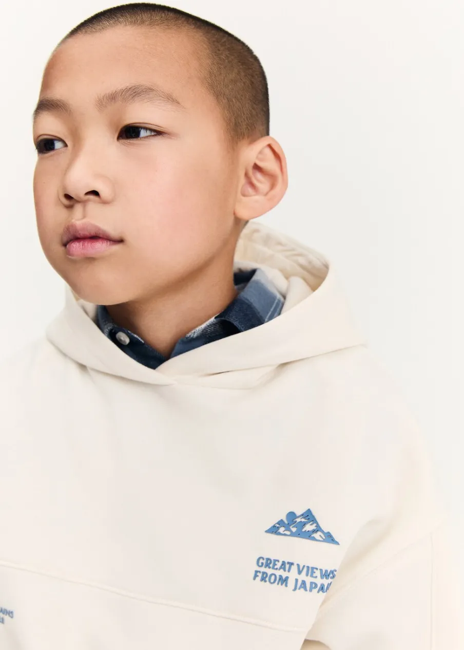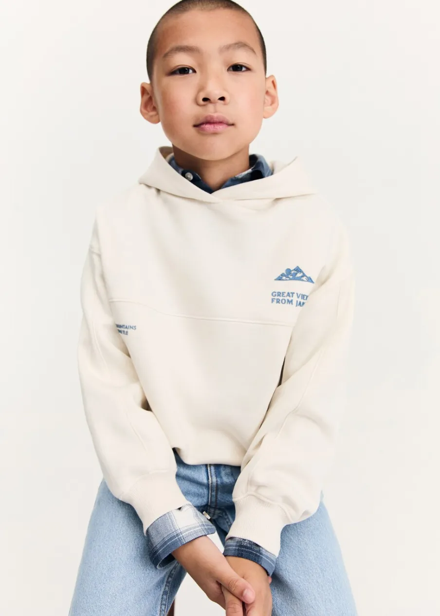 Kolekcja Powrót do szkoły. Tkanina z bawełną. Kaptur. Nadruk. Długi rękaw. Høyt liv. Model prosty.