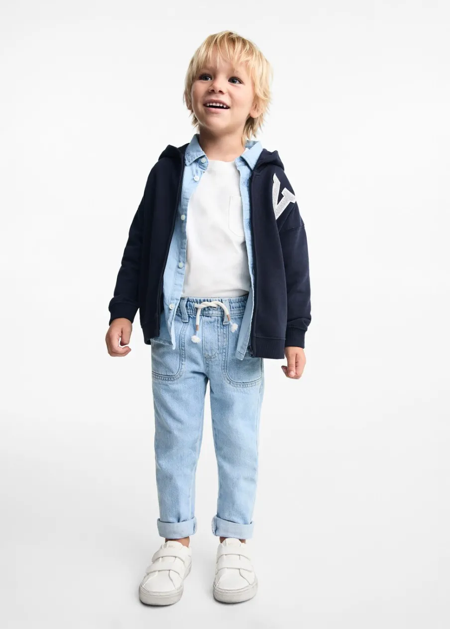 100% bomull. Model prosty. Wypukły nadruk. Długi rękaw. Dwie kieszenie boczne. Kaptur. Zapięcie na suwak. Nadruk.