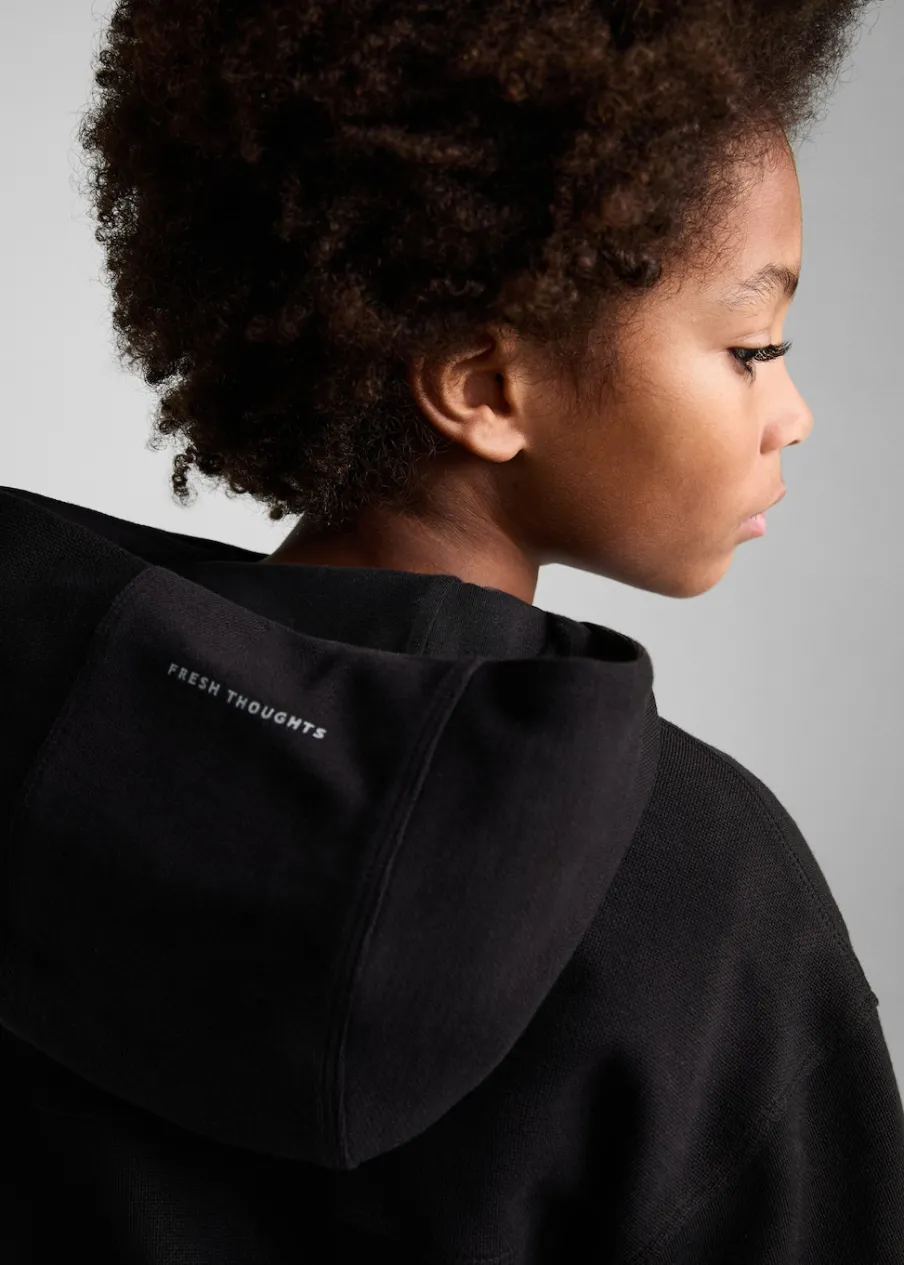 Kolekcja Powrót do szkoły. Bawełna 100%. Kaptur. Model prosty. Dwie kieszenie na zamek z boku. Długi rękaw. Dekolt V.