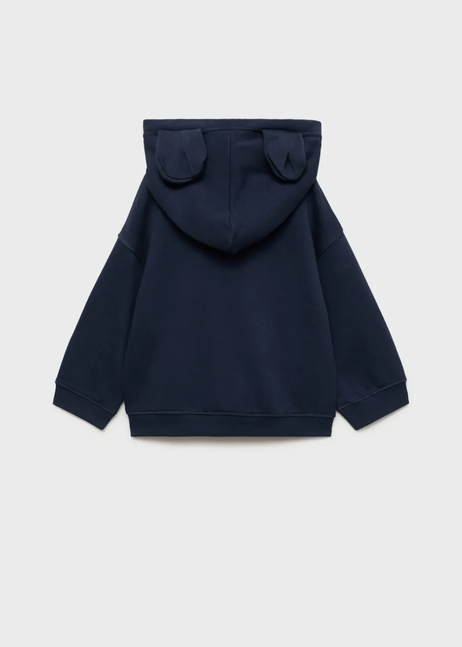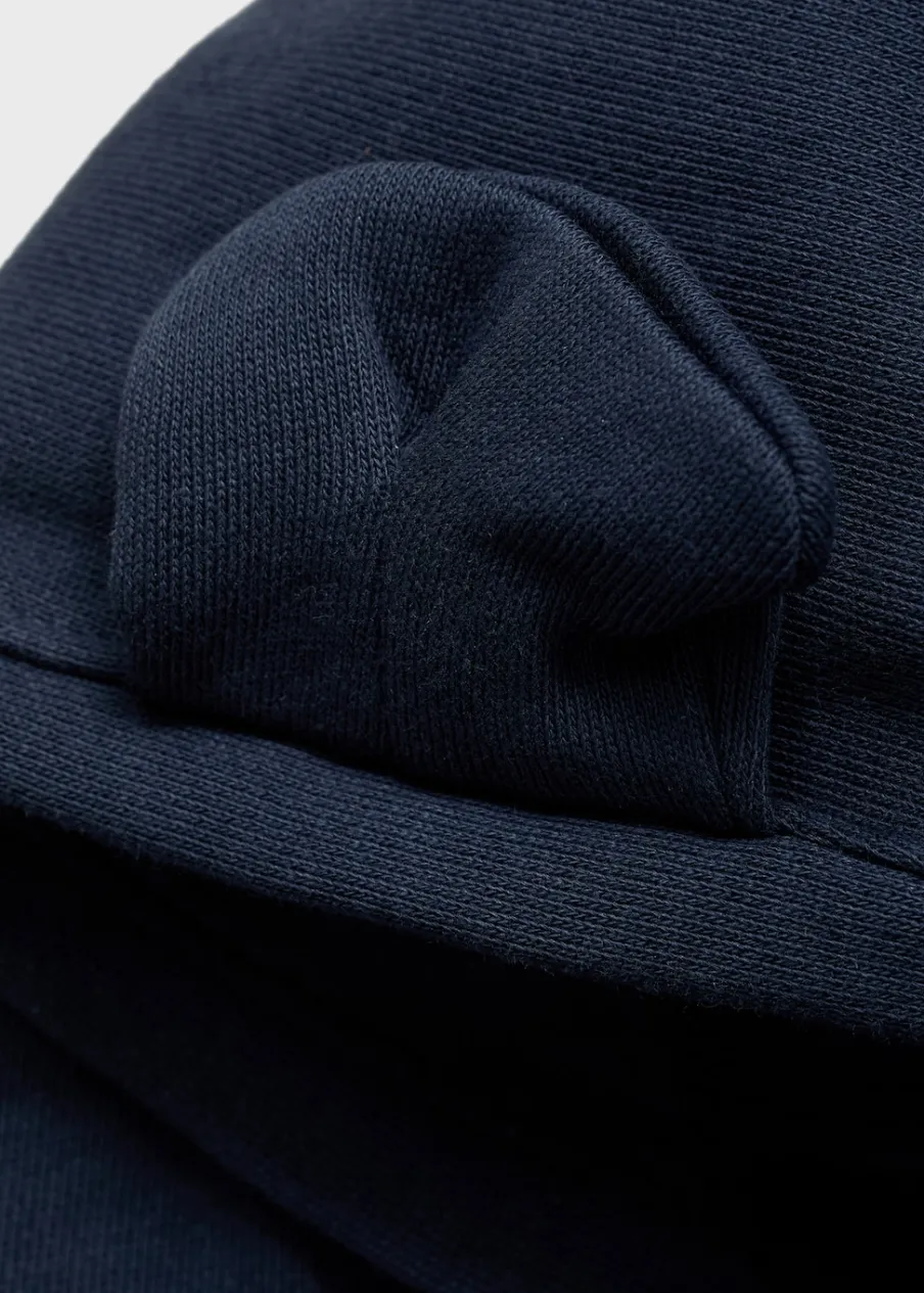 Bawełna 100%. Długi rękaw. Kaptur z uszkami. Kołnierz, mankiety i dół z prążkowanej dzianiny. Zapięcie z przodu.