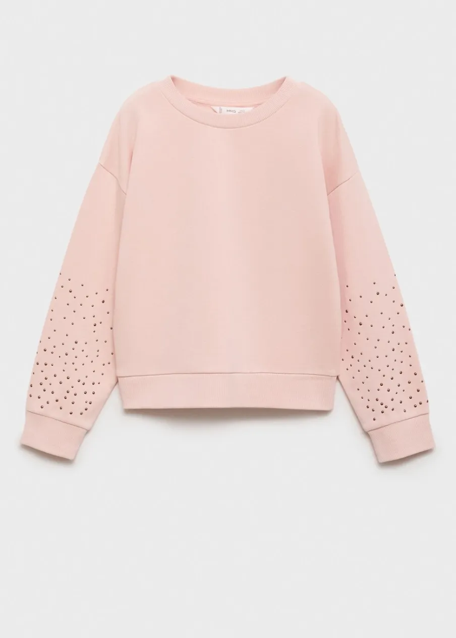 Długi rękaw. Okrągły dekolt. Bawełna 100%. Detal z koralikami.