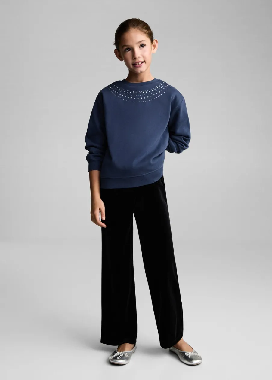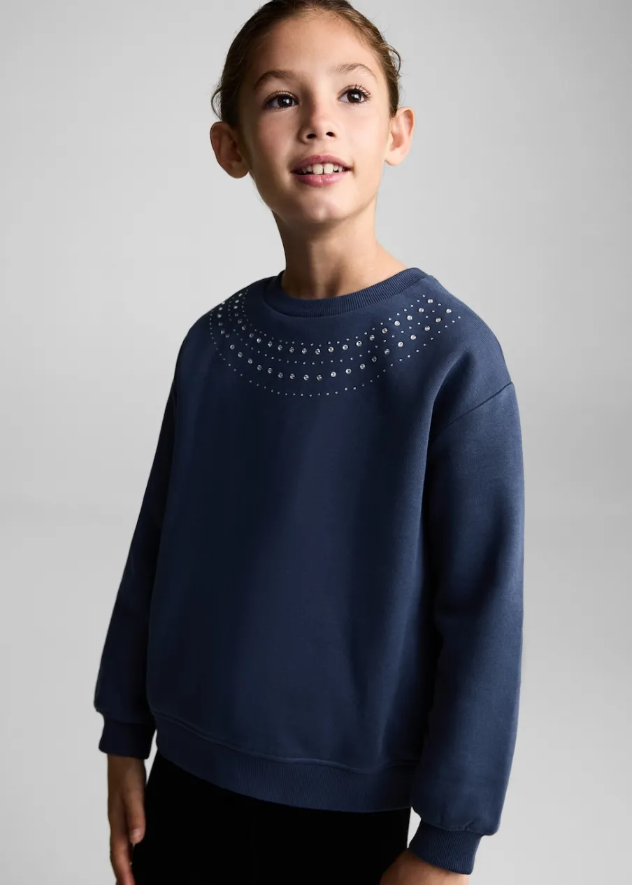 Bawełna 100%. Detal z koralikami. Okrągły dekolt. Długi rękaw.