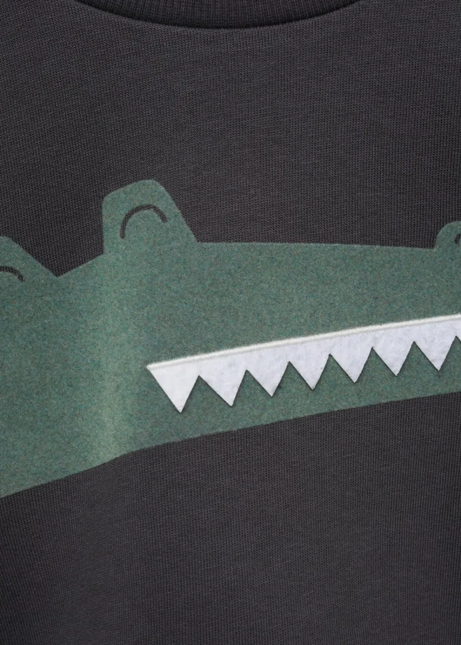 Bawełna 100%. Długi rękaw. Kołnierz, mankiety i dół z prążkowanej dzianiny. Nadruk z przodu.