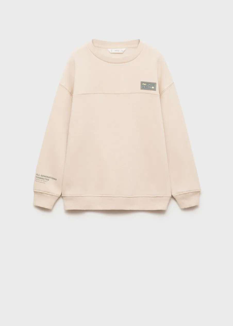Kolekcja Powrót do szkoły. Tkanina z bawełną. Høyt liv. Haftowana naszywka. Ozdobna łatka. Wzór w litery. Okrągły dekolt. Długi rękaw. Bez zapięcia.