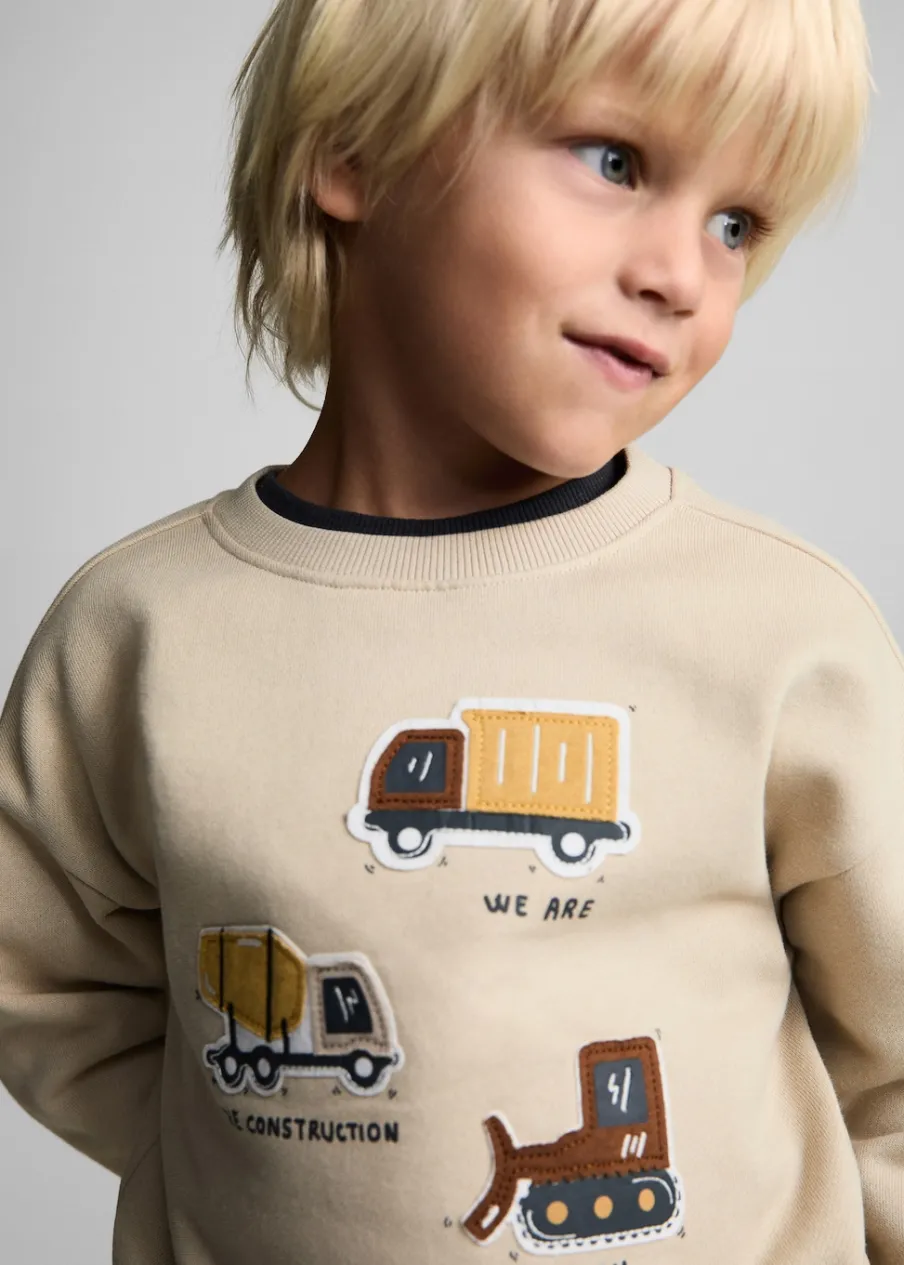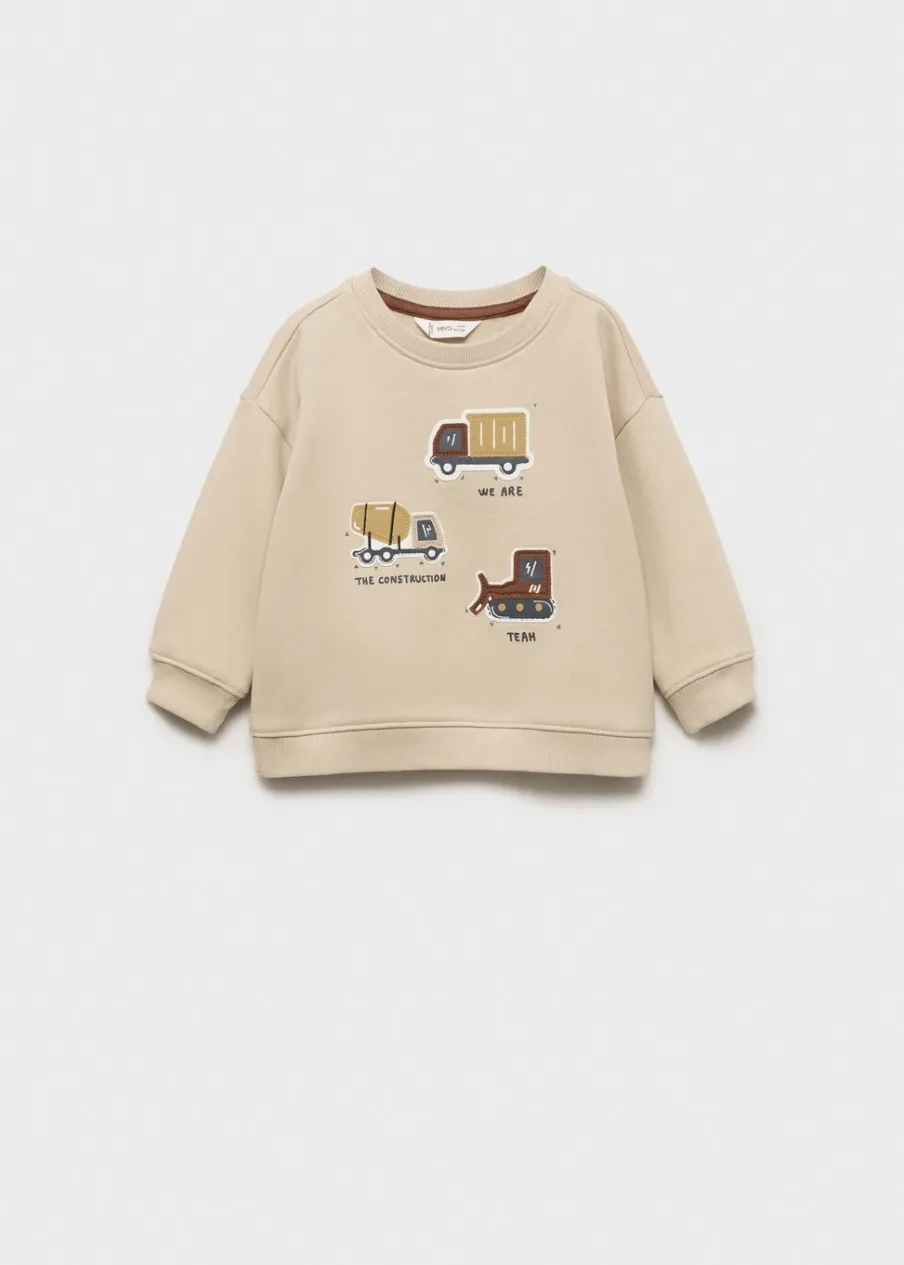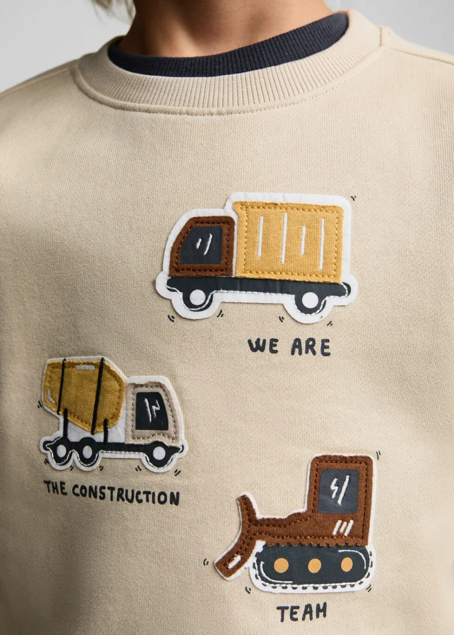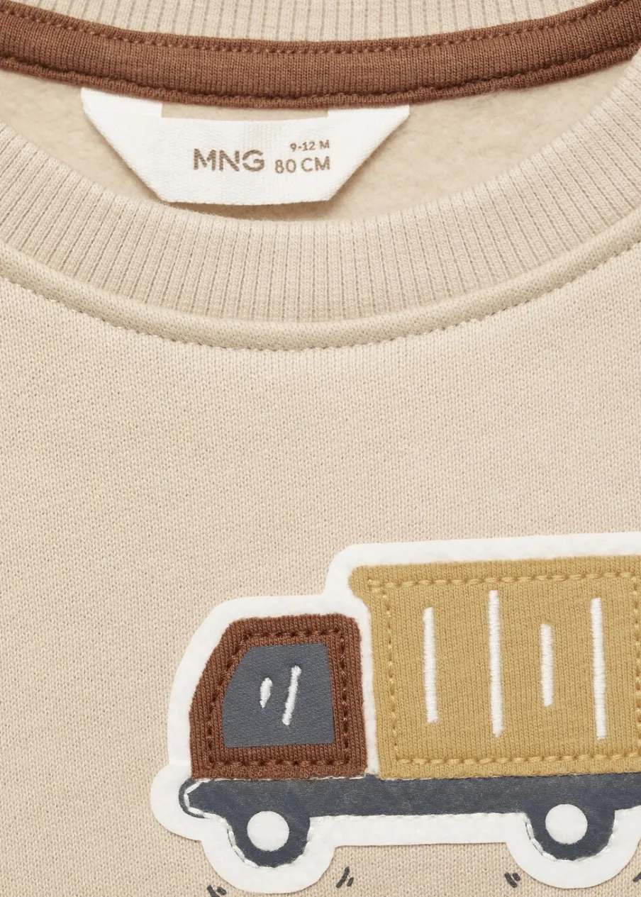 OpisBawełna 100%. Model prosty. Okrągły dekolt. Długi rękaw. Nadruk. Ozdobne łaty. Bez zapięcia.