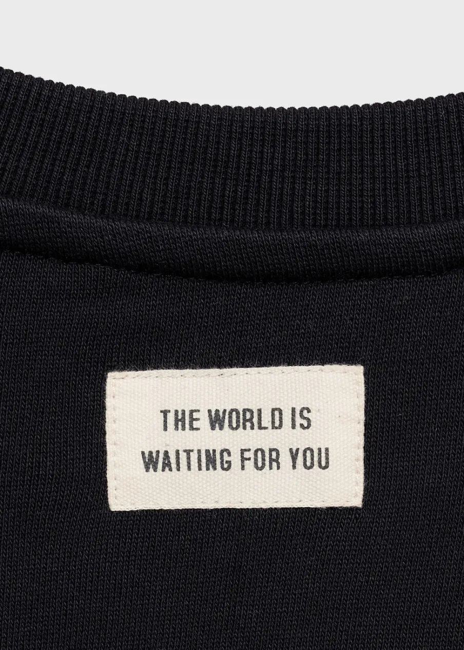 Tkanina z bawełną. Høyt liv. Model prosty. Z nadrukami. Bez zapięcia. Okrągły dekolt. Długi rękaw.