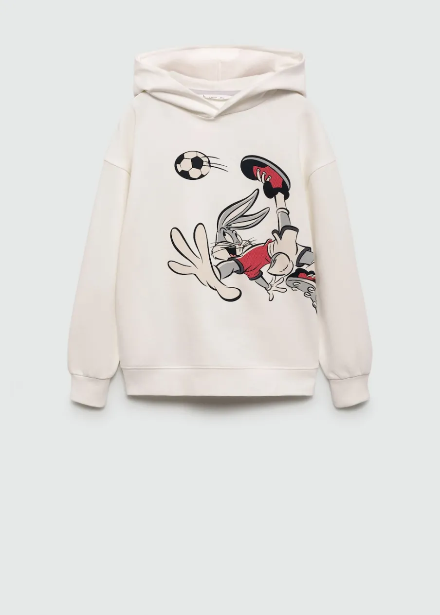 100% bomull. Model prosty. Czesany materiał. Nadruk Looney Tunes. Długi rękaw. Z kapturem. Bez zapięcia. Licencjonowany nadruk.