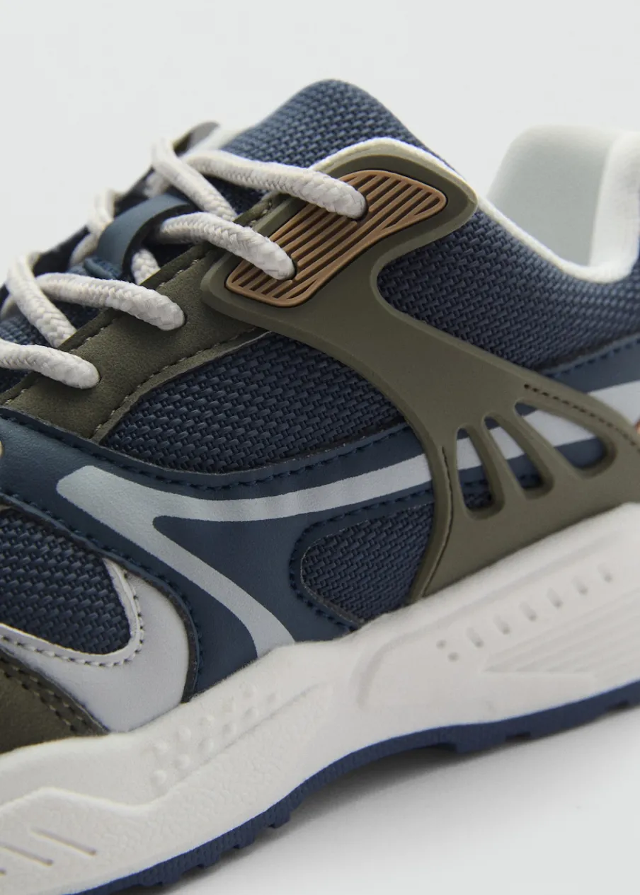 Model łączony. Okrągły nosek. Kontrastowa podeszwa. Wiązanie na sznurówki.