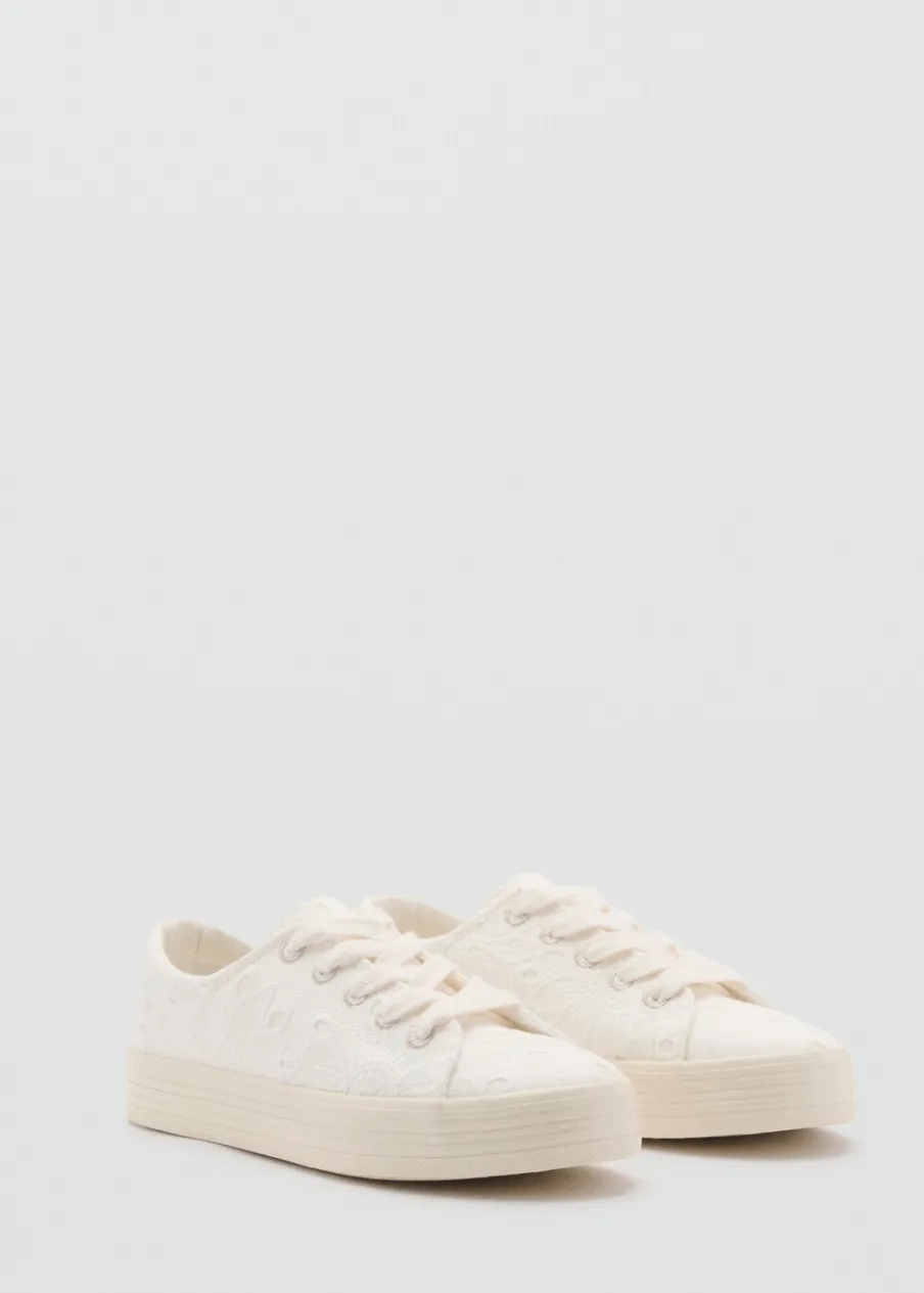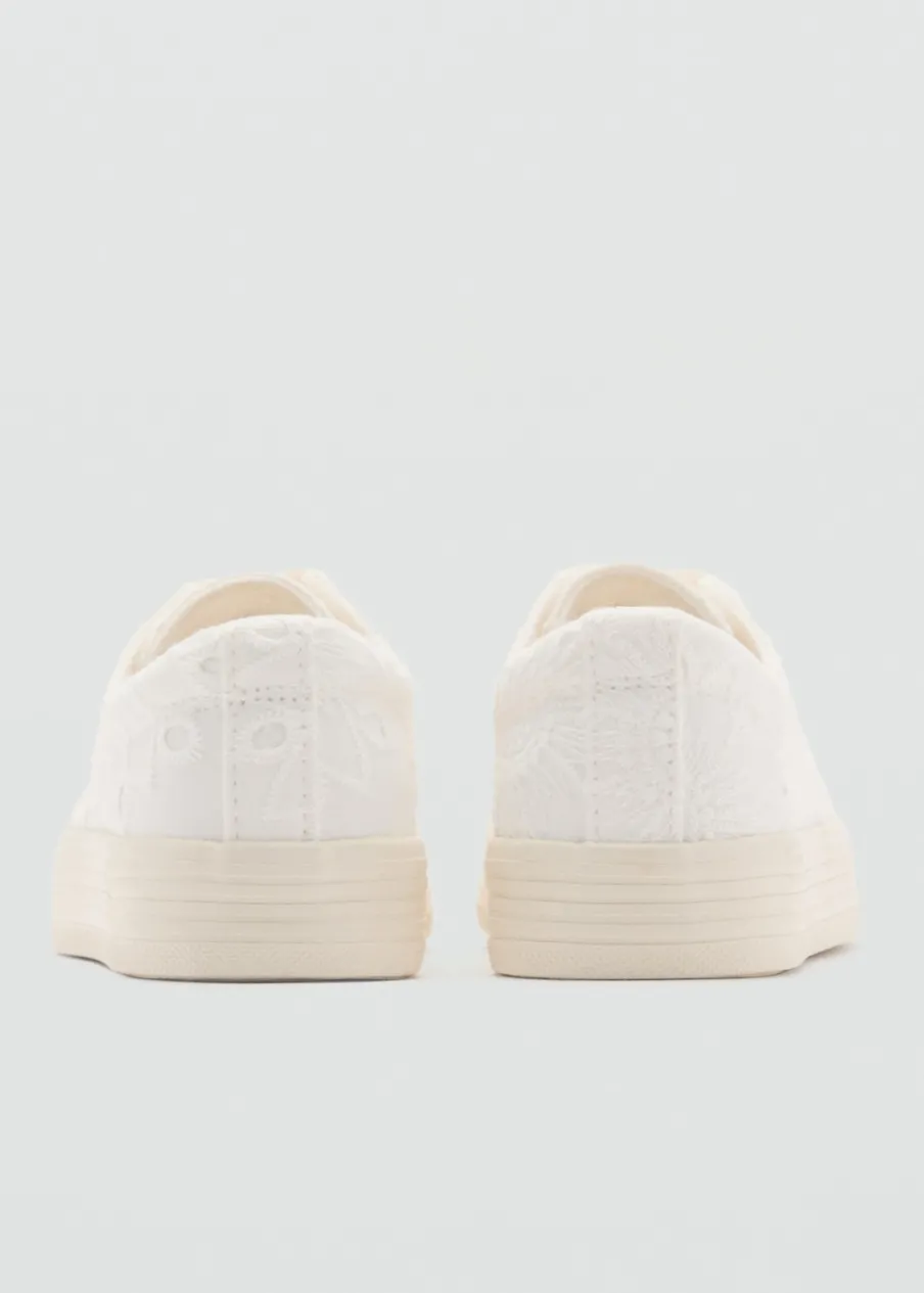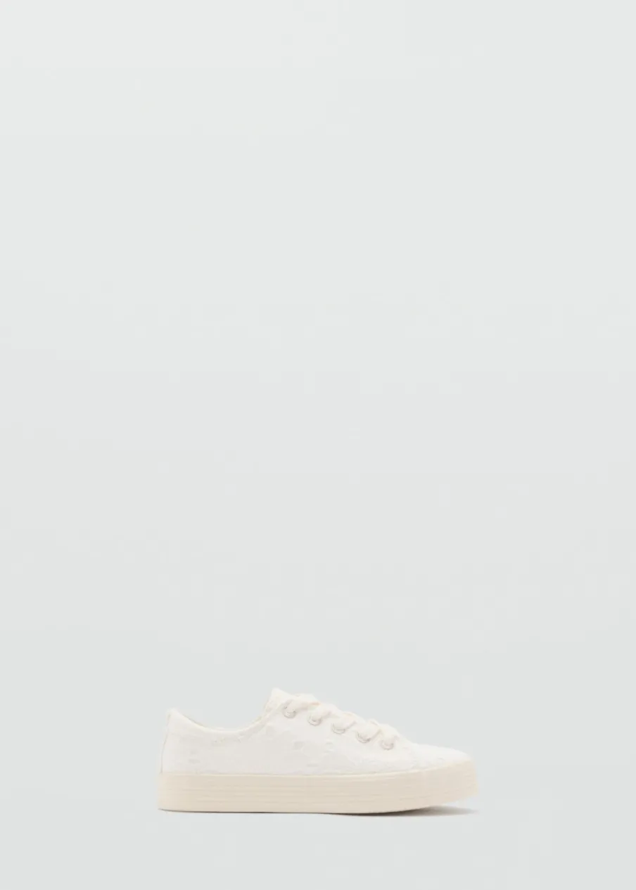 OpisBawełna 100%. Tkanina z angielskim haftem. Wiązanie na sznurówki. Gruba podeszwa.