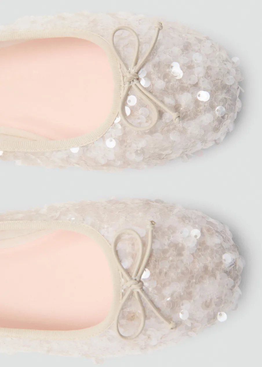 OpisCekinowa tkanina. Okrągły nosek. Ozdobna kokardka. Kolekcja Ramadan.