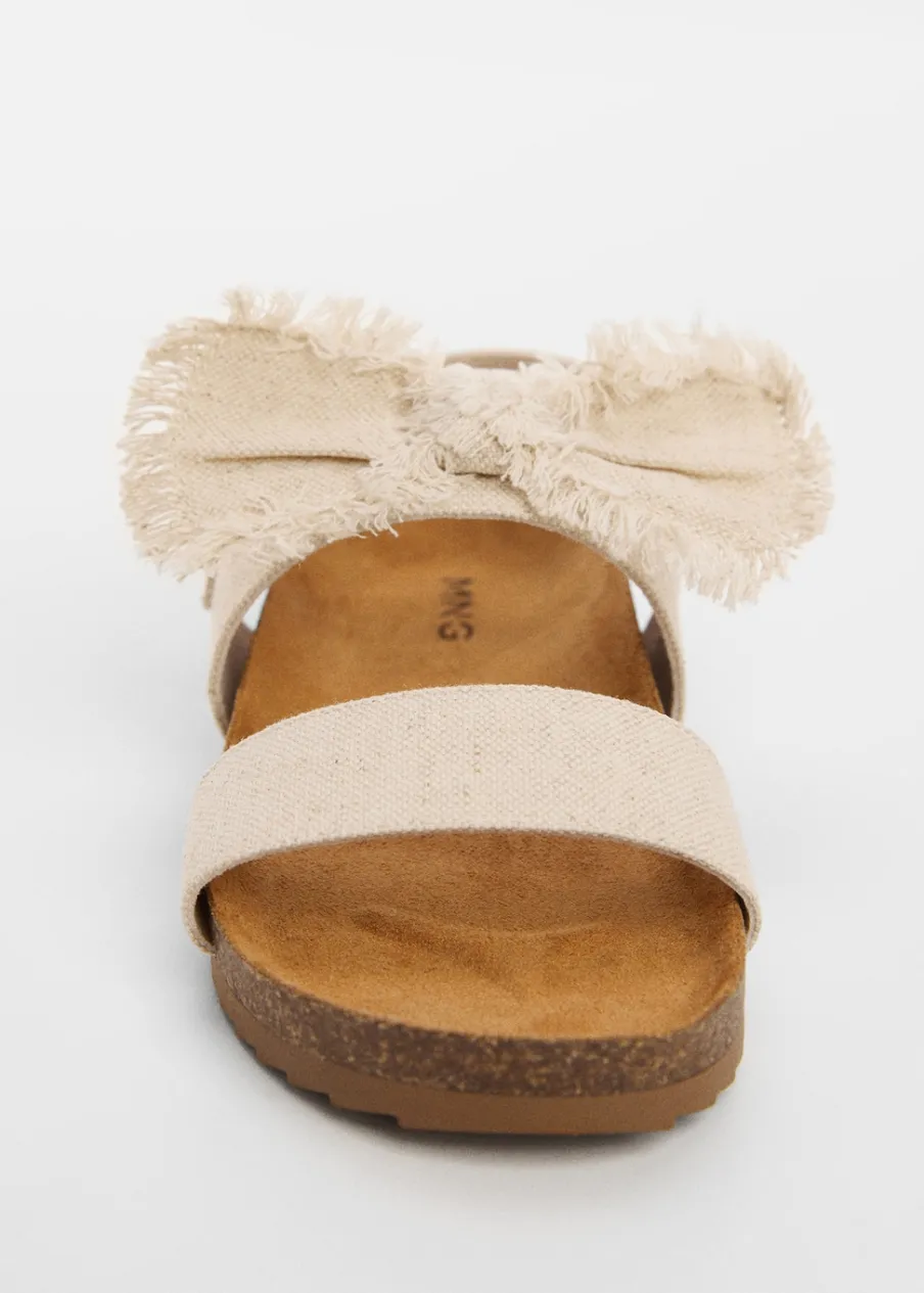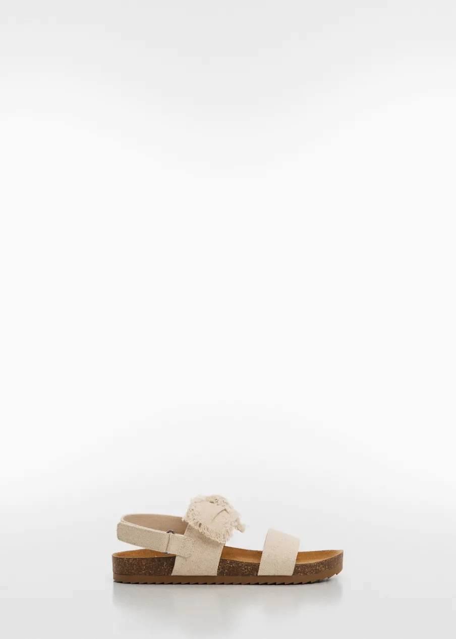 Tkanina kanwa. Rozporek z przodu. Płaska podeszwa. Wierzch z bawełny. Ozdobna kokardka. Okrągły nosek. Zapięcie na rzepy.