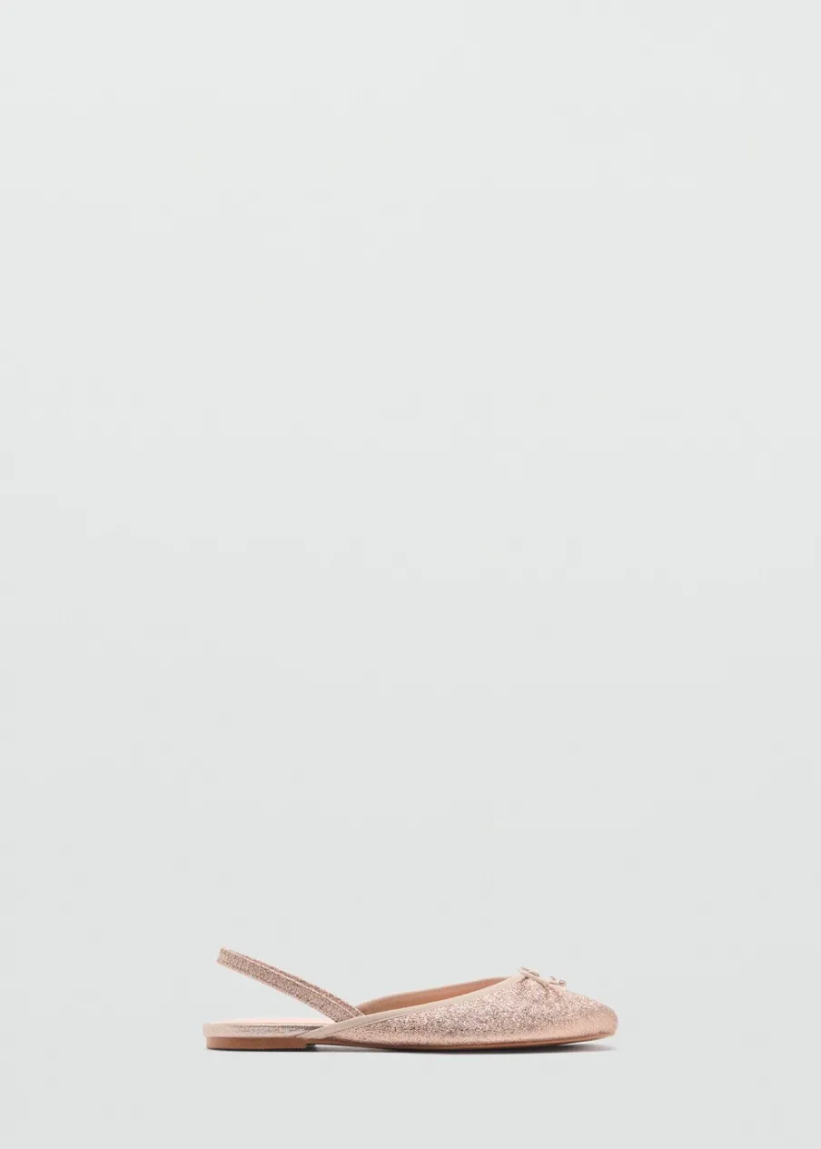 Tkanina z brokatem. Okrągły nosek. Uchwyt z tyłu. Ozdobna kokardka. Kolekcja Ramadan.
