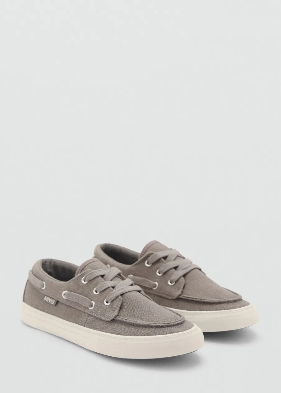 Bawełna 100%. Zaokrąglona cholewka. Podeszwa z gumy w kontrastowym kolorze. Stębnowane detale. Wiązanie na sznurówki.