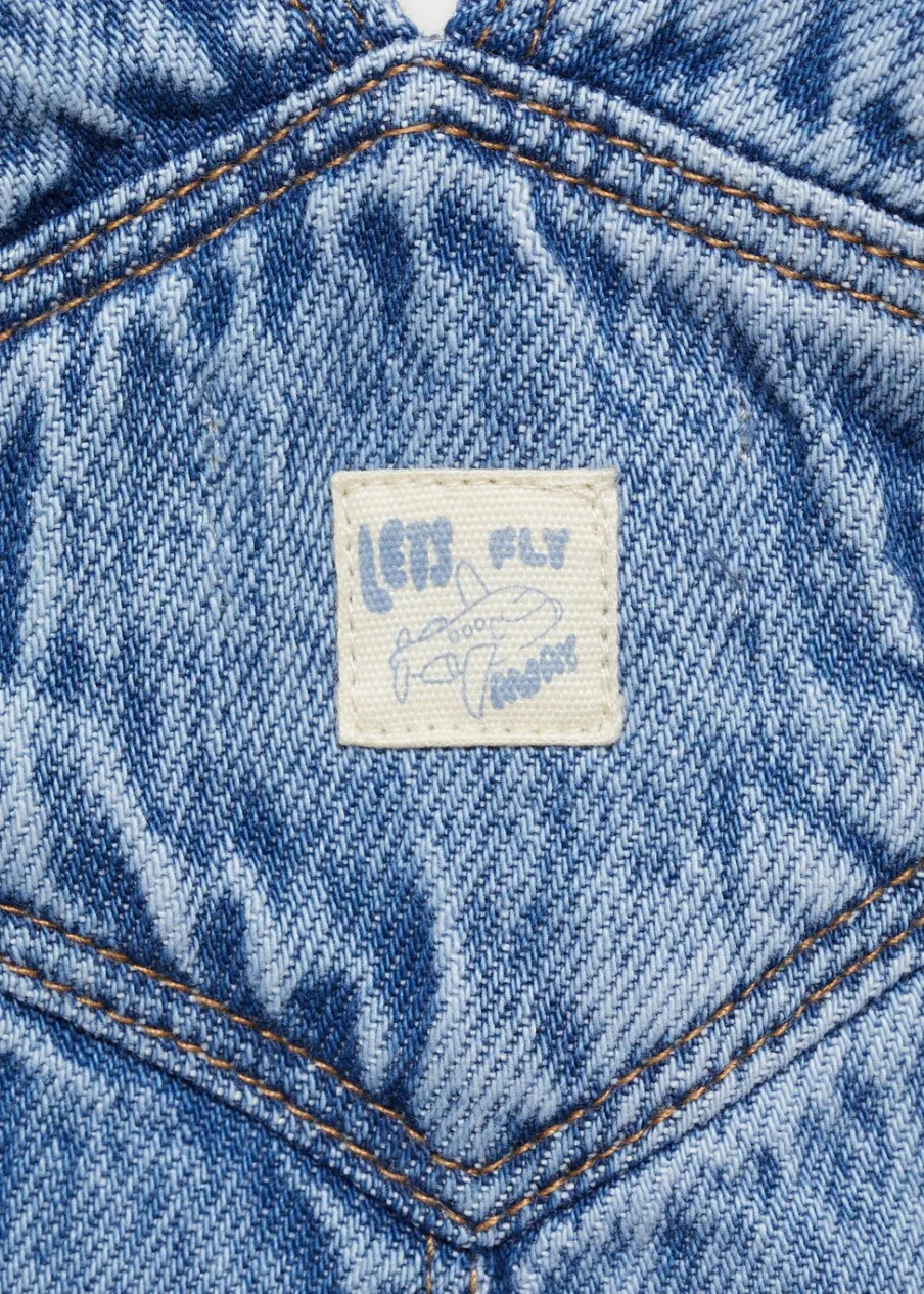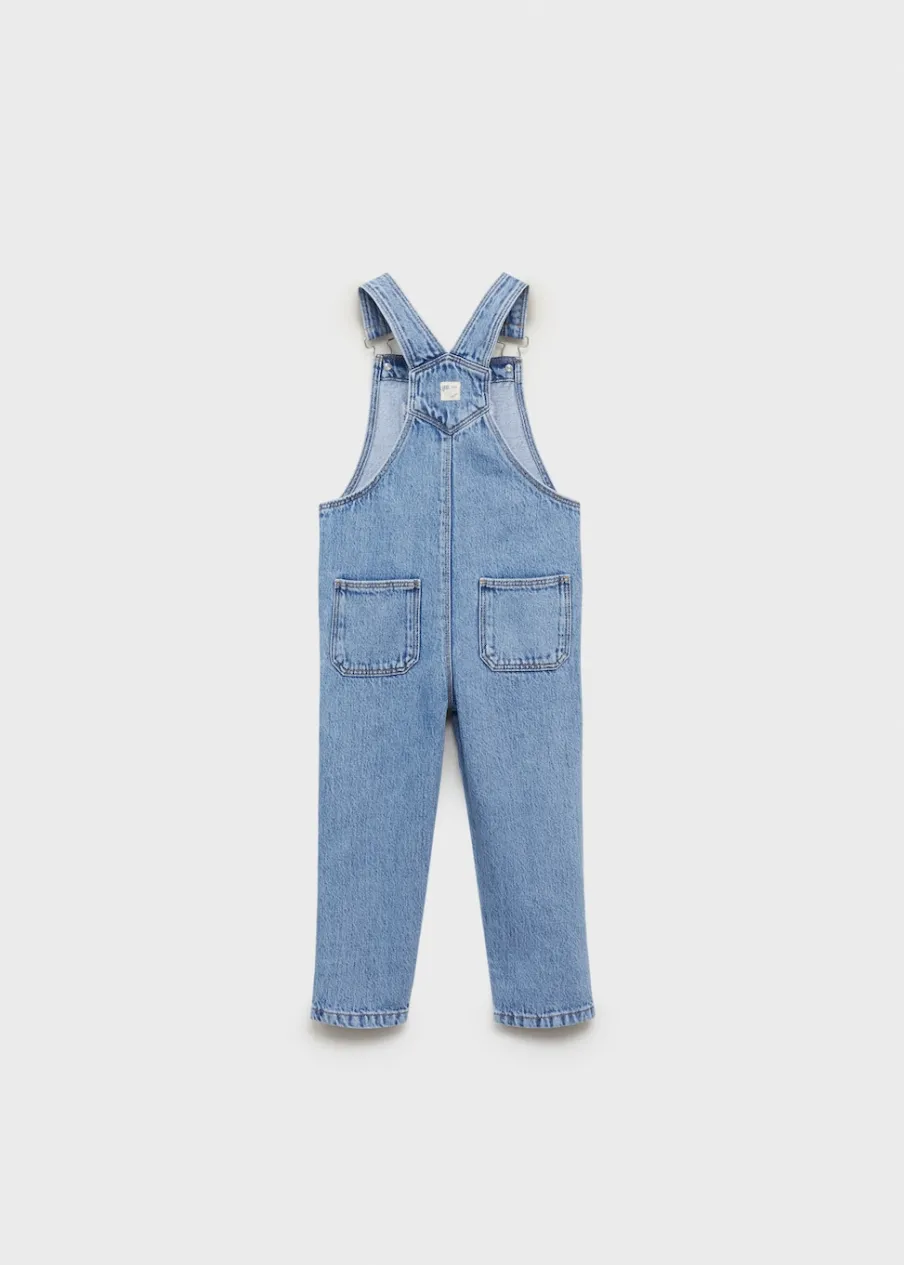 Tkanina bawełniana w dżinsowym stylu. Ramiączka. Zapięcie na metalowy zacisk. Naszywana kieszeń z przodu. Boczne zapięcie na zatrzaskowe guziki. Dwie kieszenie z przodu.