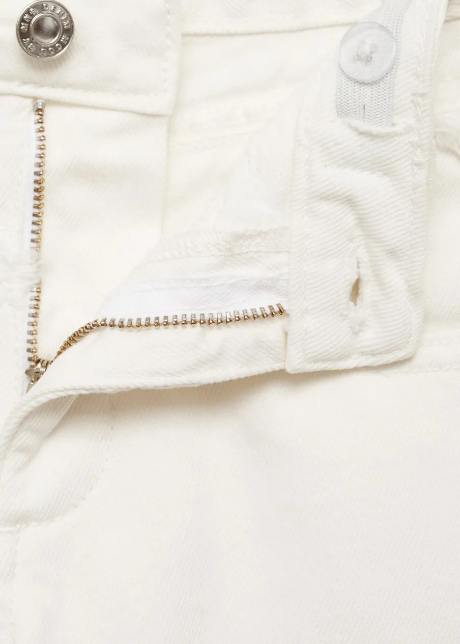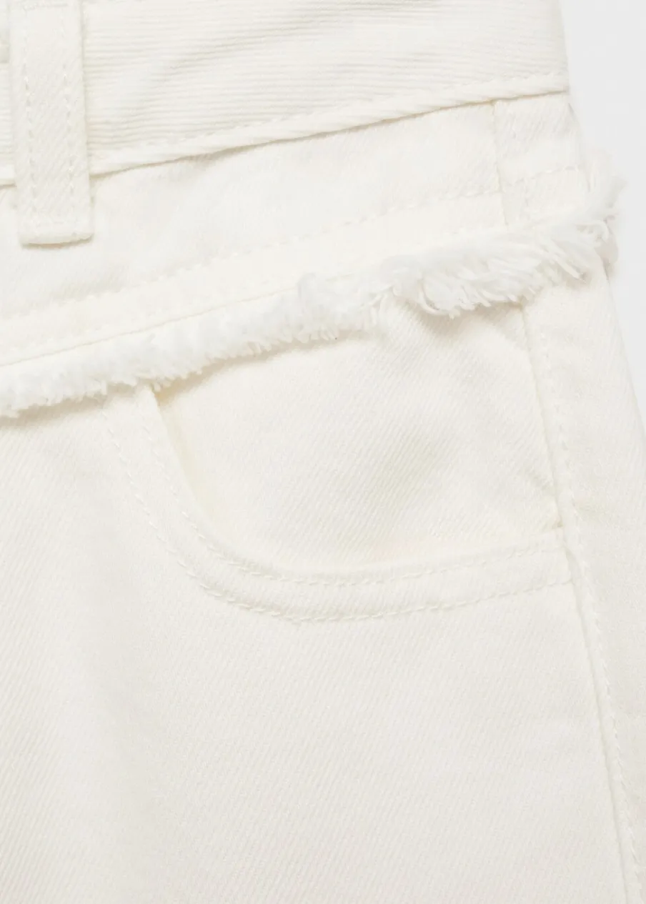 Kolekcja Powrót do szkoły. Tkanina bawełniana w dżinsowym stylu. Model prosty. Fason wideleg. Średni stan. Postrzępione detale. Pięć kieszeni. Zapięcie na suwak i guzik.