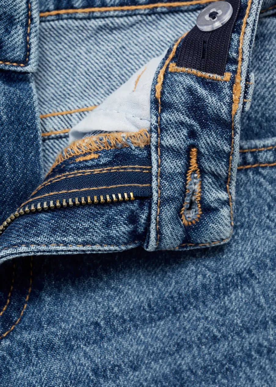 Tkanina bawełniana w dżinsowym stylu. 100% bomull. Model prosty. Pięć kieszeni. Postrzępione nogawki. Zapięcie na suwak i guzik.