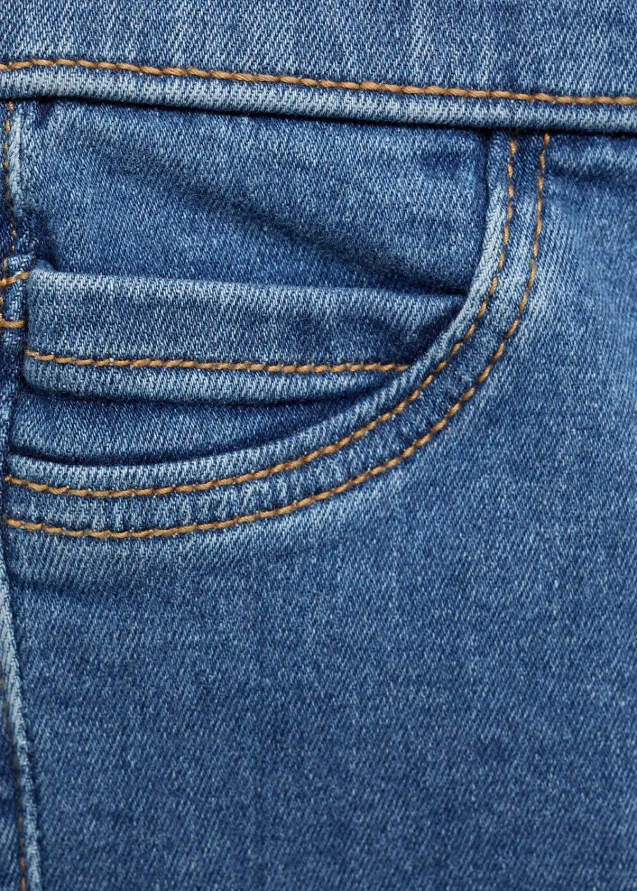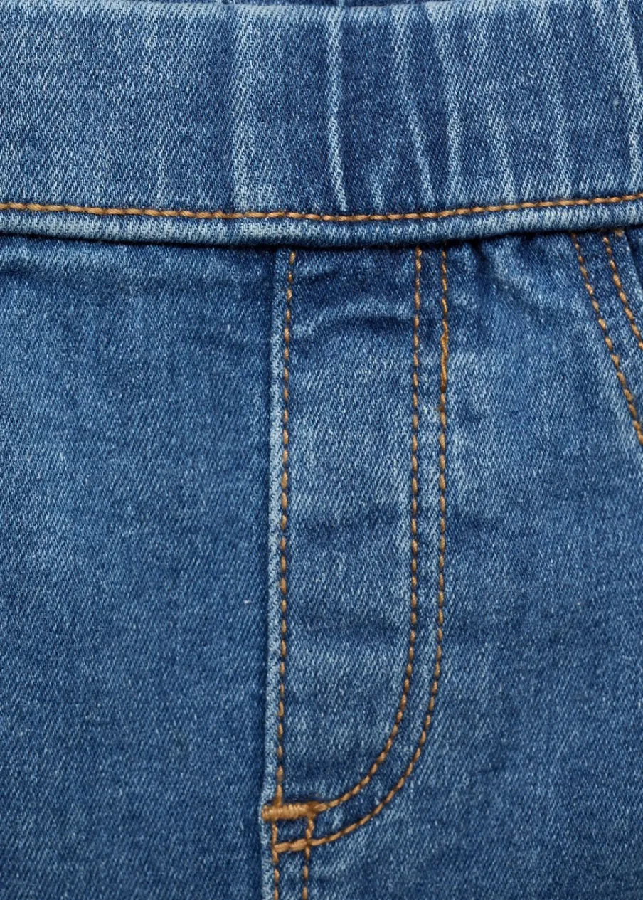 OpisTkanina bawełniana w dżinsowym stylu. Dopasowany fason. Elastyczny pas. Pięć kieszeni.