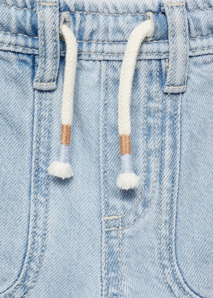 Tkanina bawełniana w dżinsowym stylu. Model prosty. Elastyczny pas. Cztery kieszenie. Regulowane wiązanie w talii.