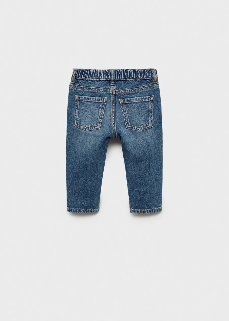 Tkanina bawełniana w dżinsowym stylu. Model prosty. Model długi. Elastyczny pas. Pięć kieszeni. Zapięcie na zatrzaskowy guzik.