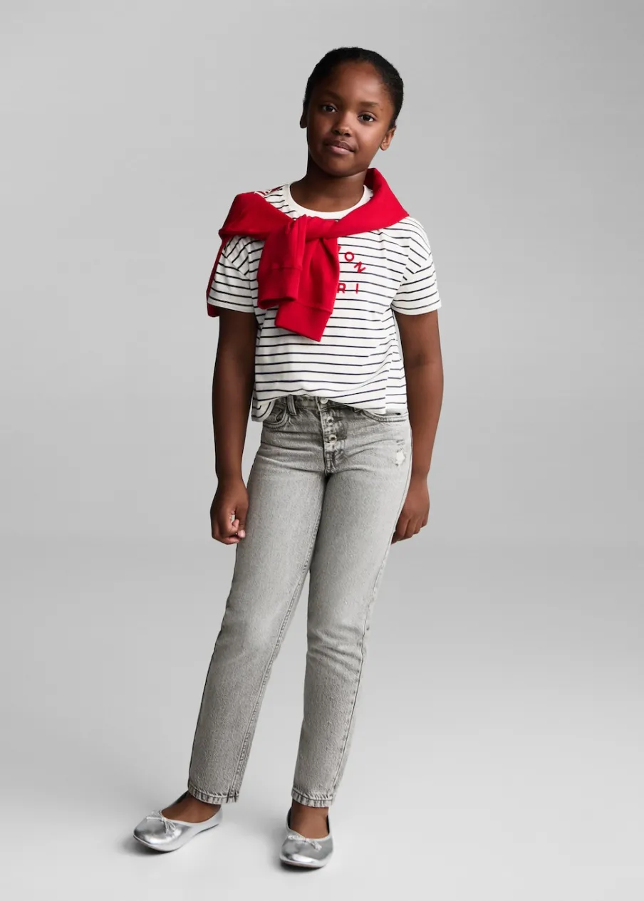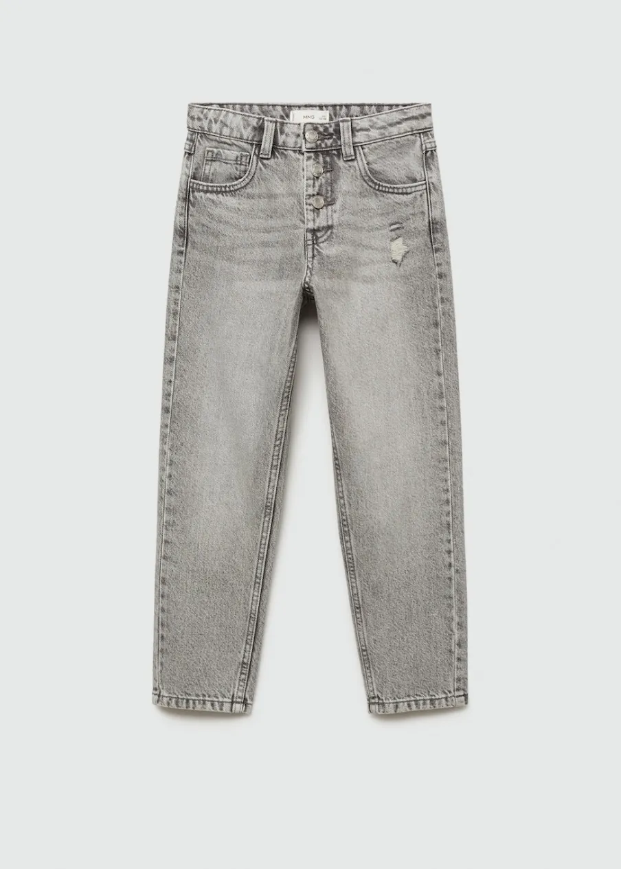 OpisTkanina bawełniana w dżinsowym stylu. Mom-fit. Model długi. Model prosty. Pięć kieszeni. Ozdobne rozdarcia. Zap…