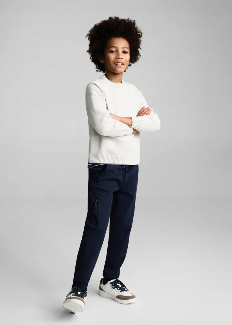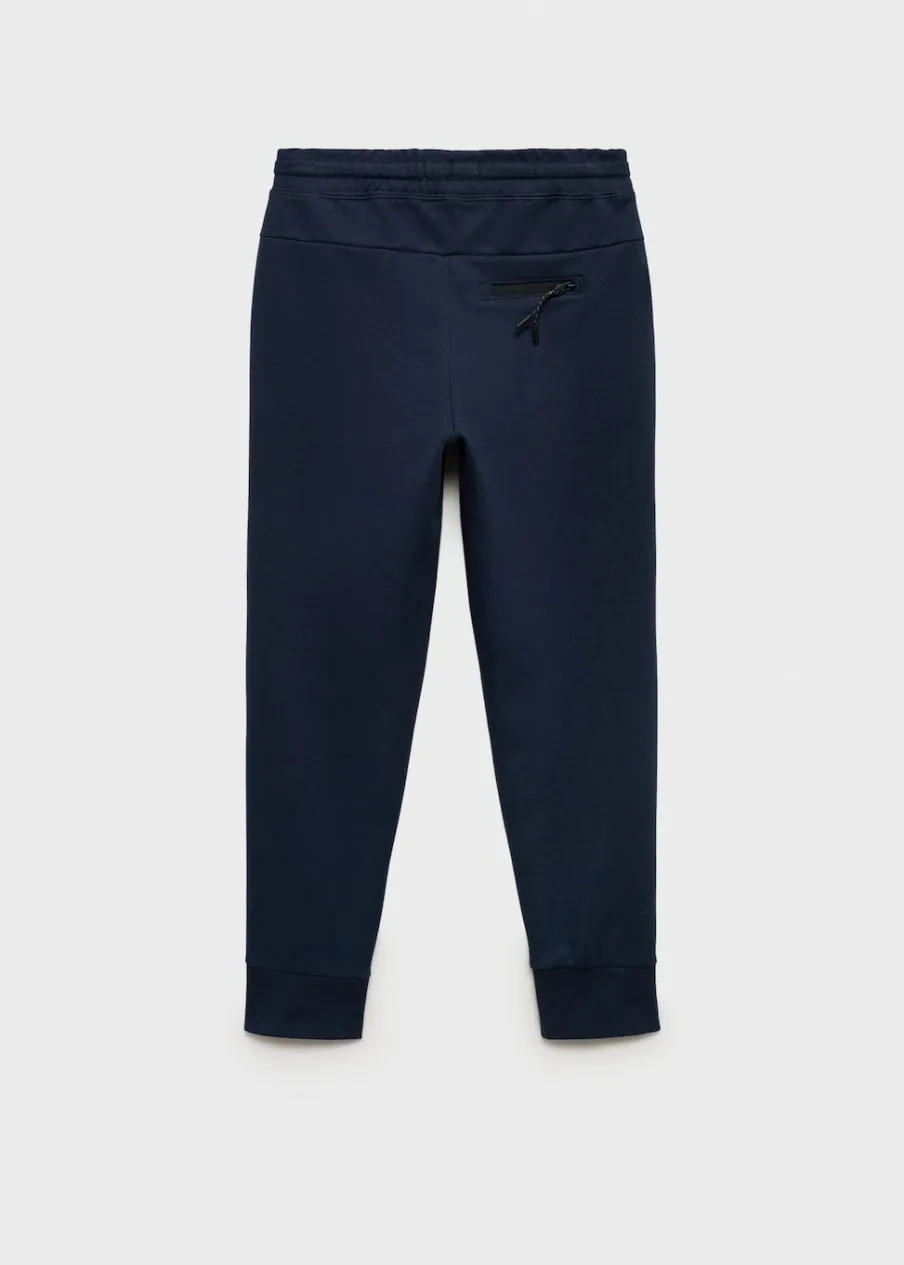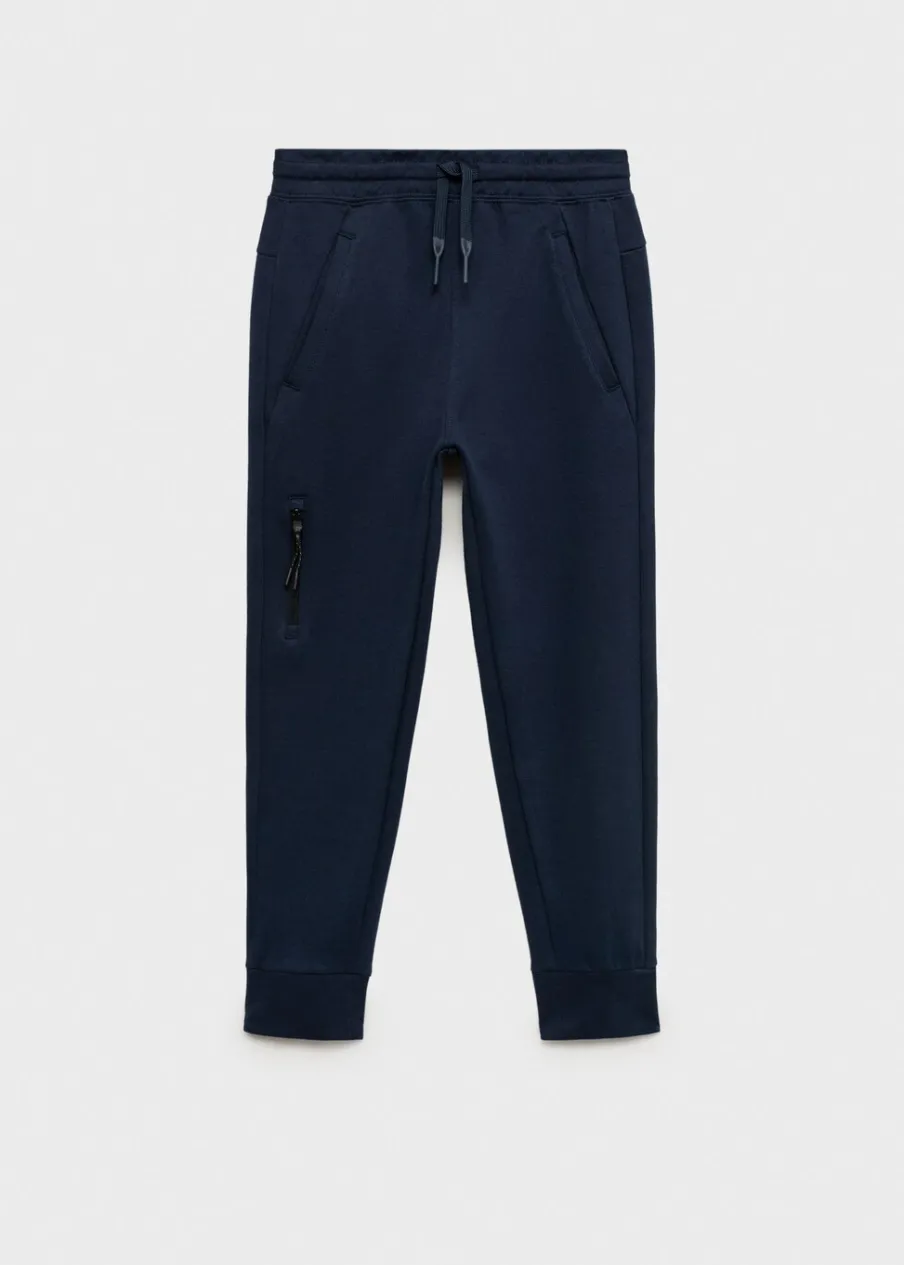 Tkanina z bawełną. Średni stan. Elastyczny pas ze sznurkiem. Dwie kieszenie z przodu. Kieszeń z przodu zapinana na suwak. Kieszeń z tyłu zapinana na suwak.