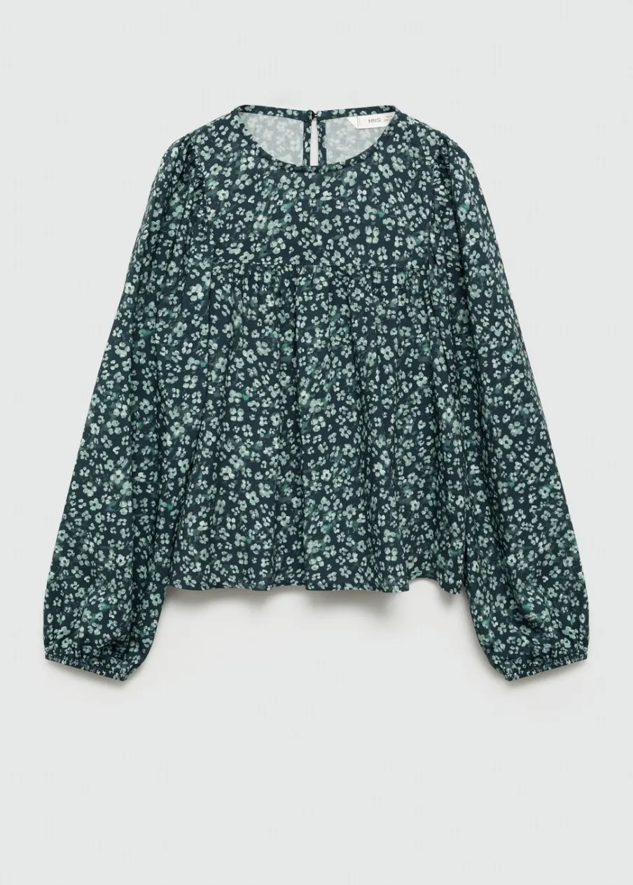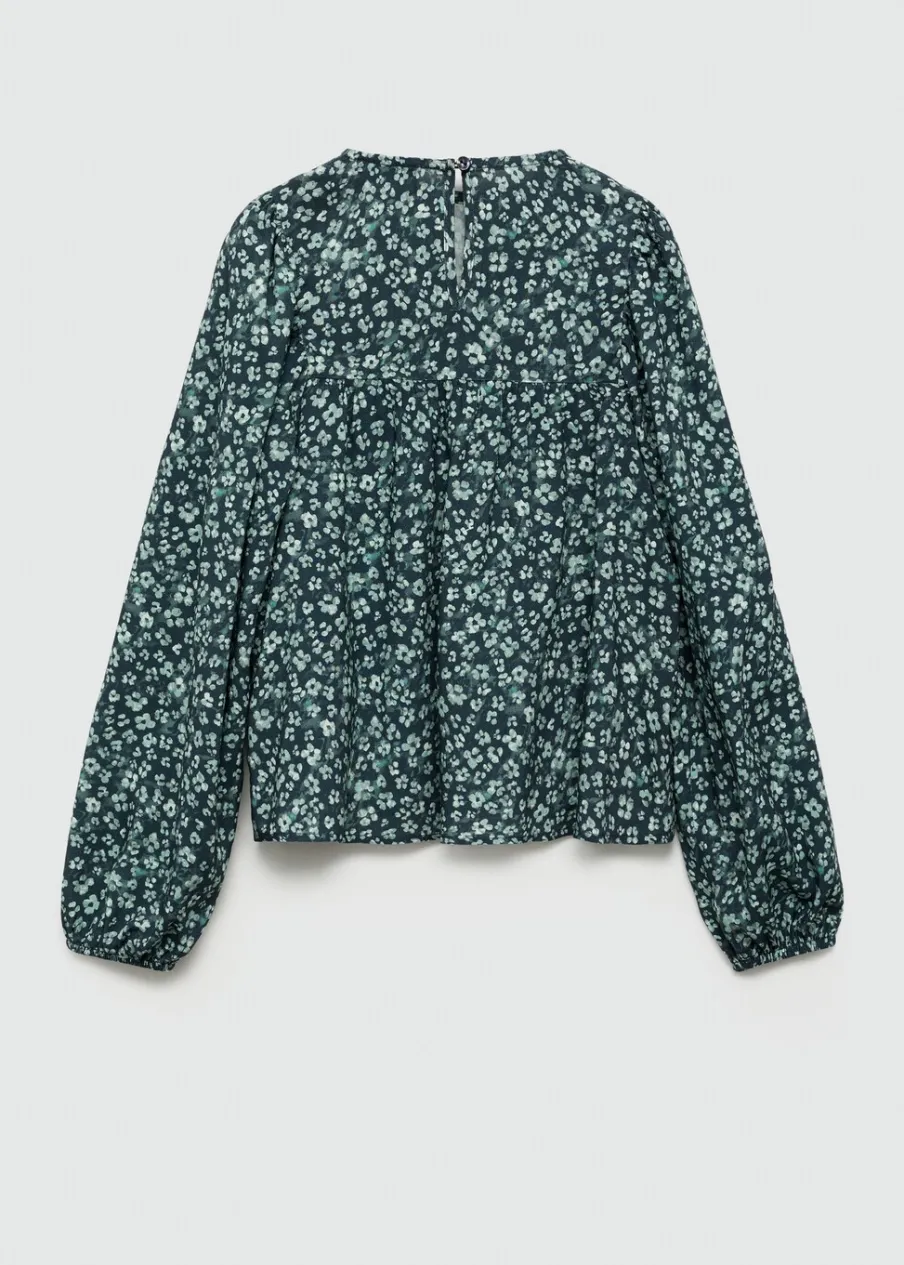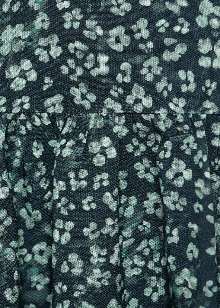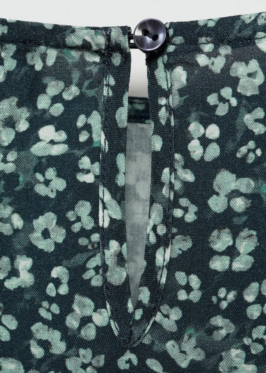 Dostępny zestaw total look. Model prosty. Kwiatowy wzór. Okrągły dekolt. Długi rękaw. Zapięcie na guzik z tyłu.