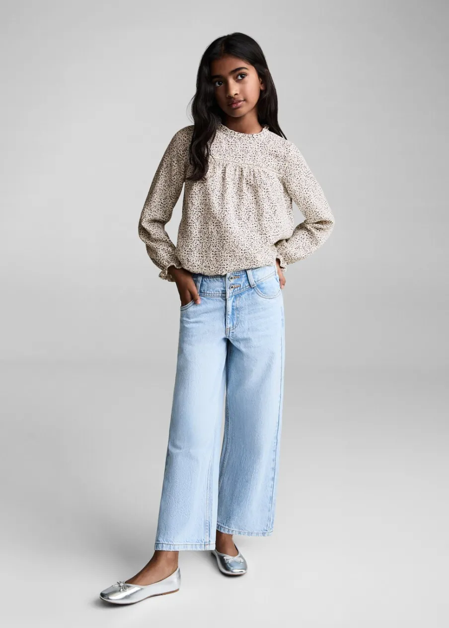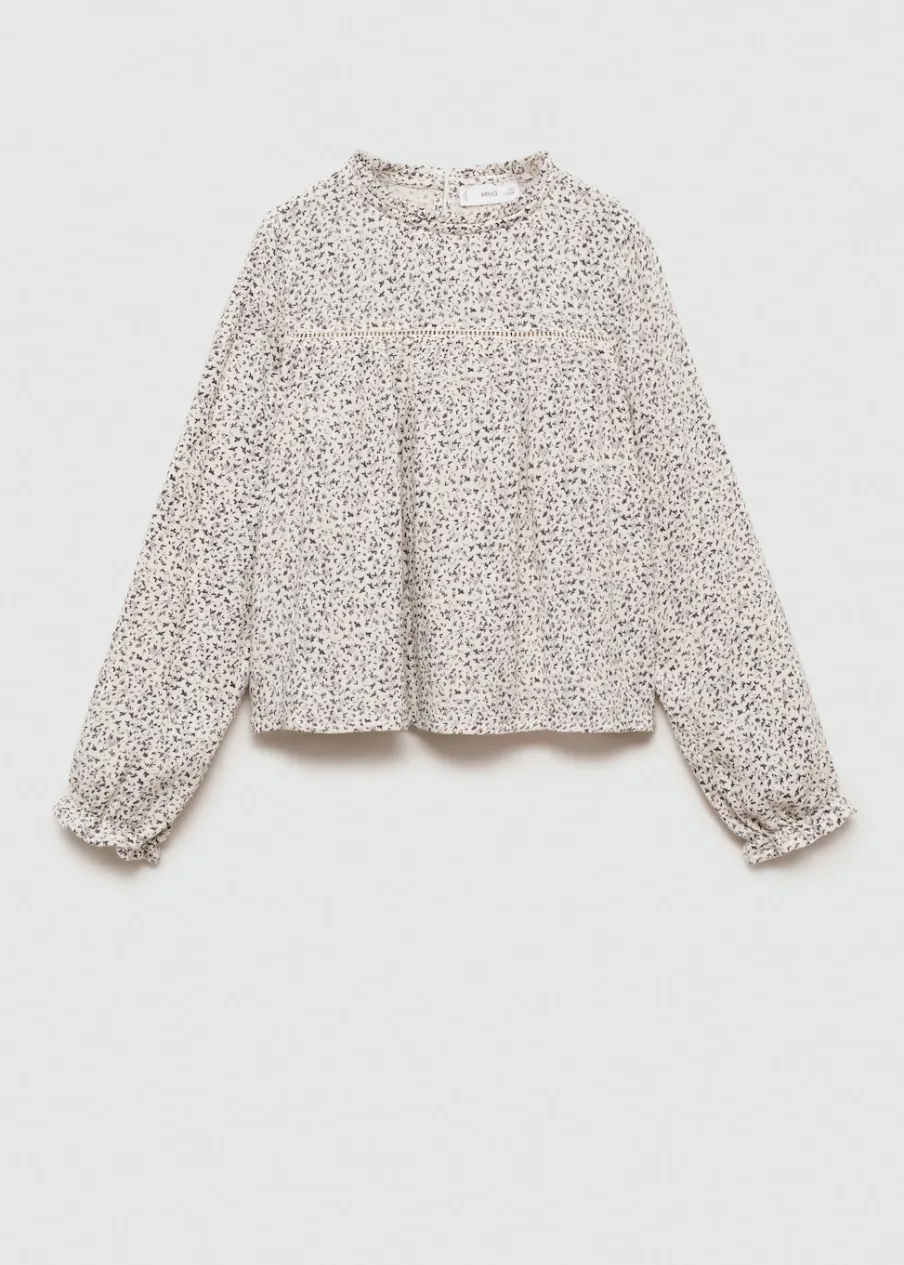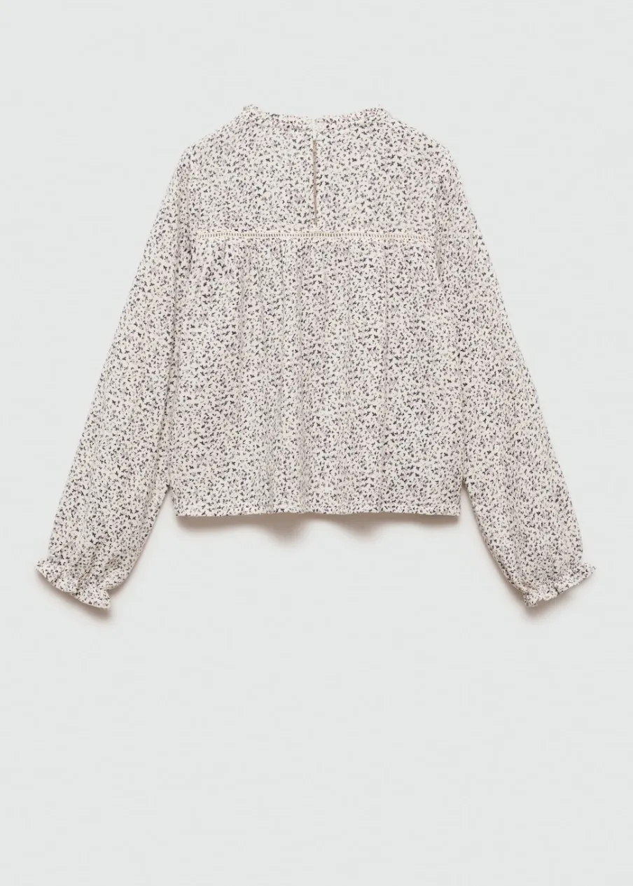100% bomull. Kwiatowy wzór. Model prosty. Okrągły dekolt. Długi rękaw ze szczypankami. Zapięcie na guziki.