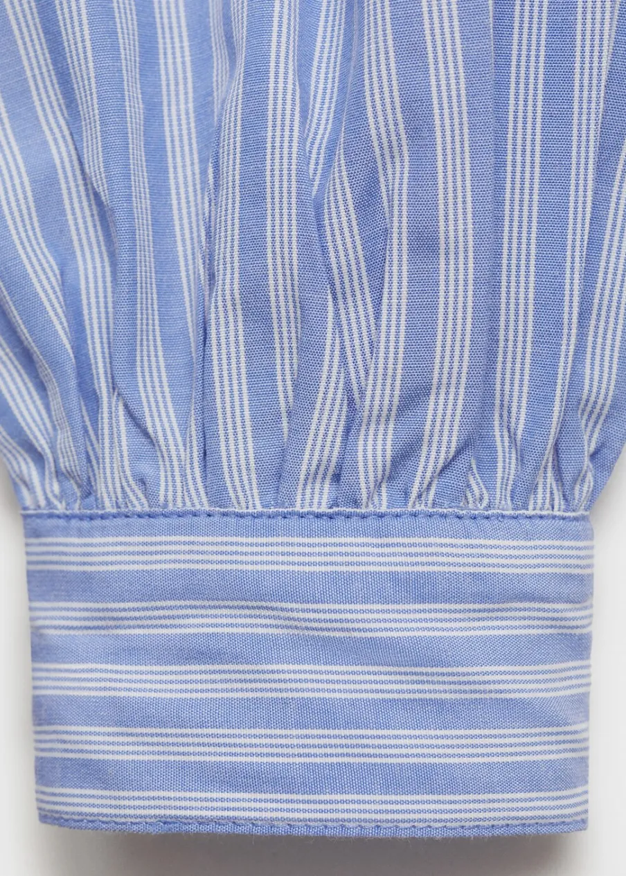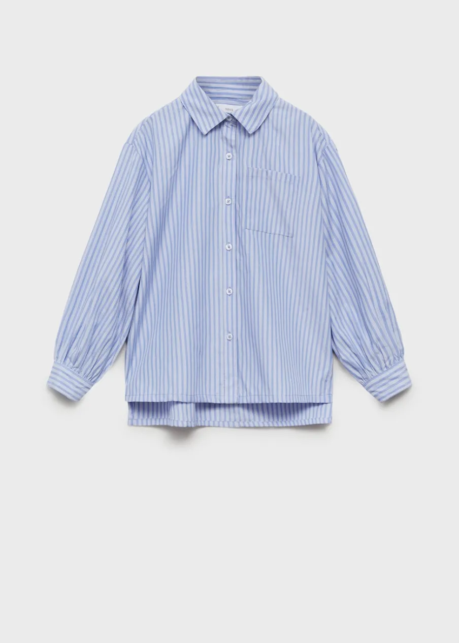 OpisBawełniana tkanina. Model prosty. Nadruk: paski. Kieszeń nakładana na piersi. Koszulowy kołnierz. Długi rękaw….