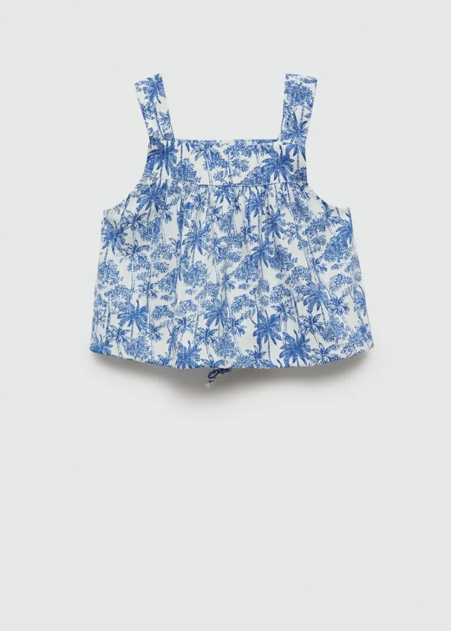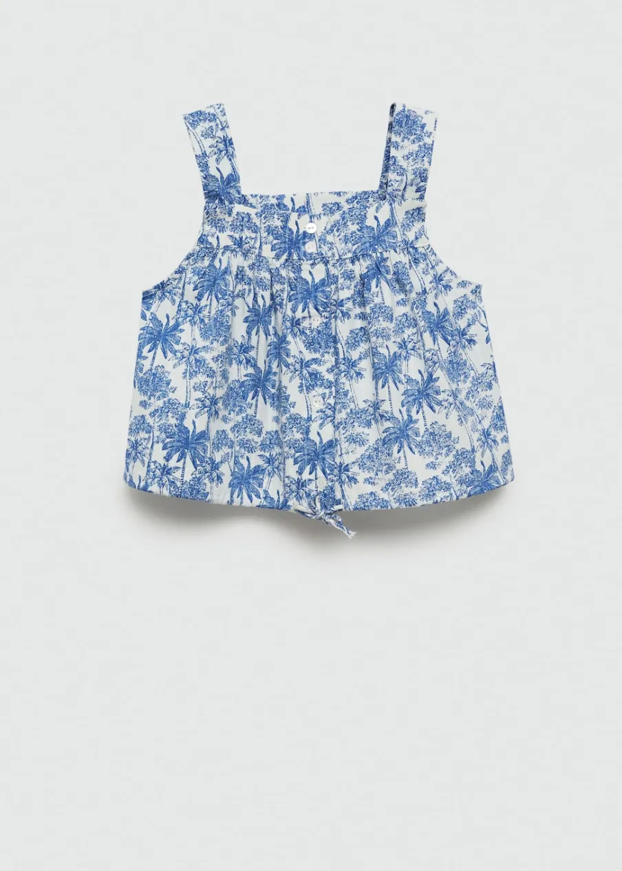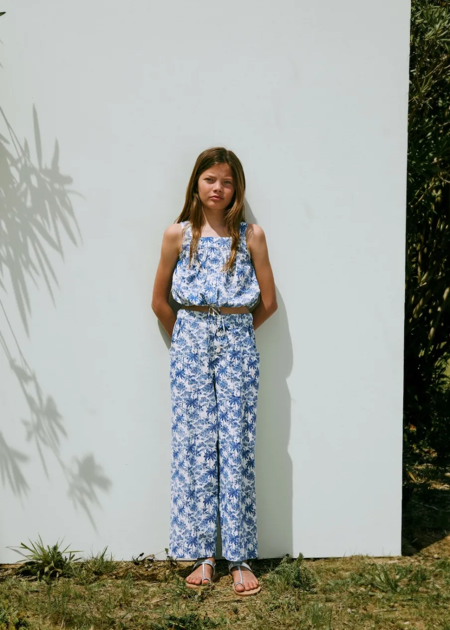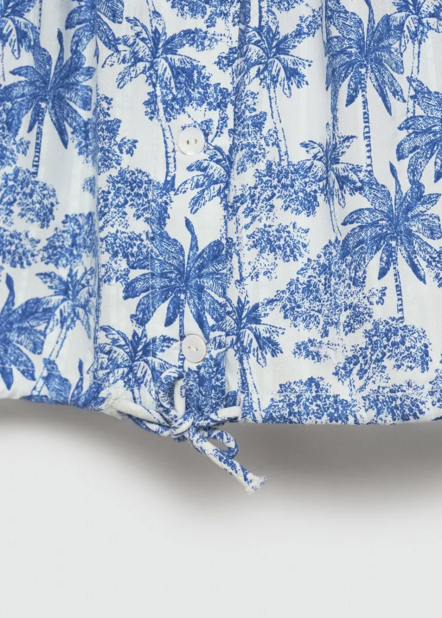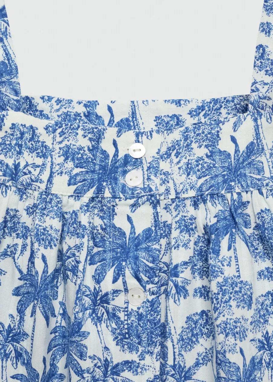 Tkanina bawełniana. Wzorzysta. Model prosty. Deseń crop. Szerokie ramiączka. Kwadratowy dekolt. Bez rękawów. Zapięcie na guziki. Regulowane wiązanie. Total look.