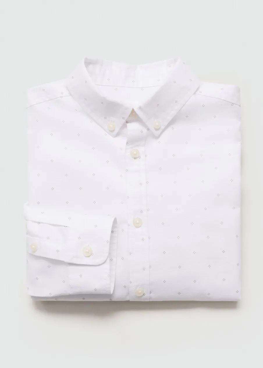 100% bomull. Model prosty. Krój regular. Koszulowy kołnierz. Długi rękaw. Zapinane mankiety. Nadruk. Zapięcie na guziki z przodu.