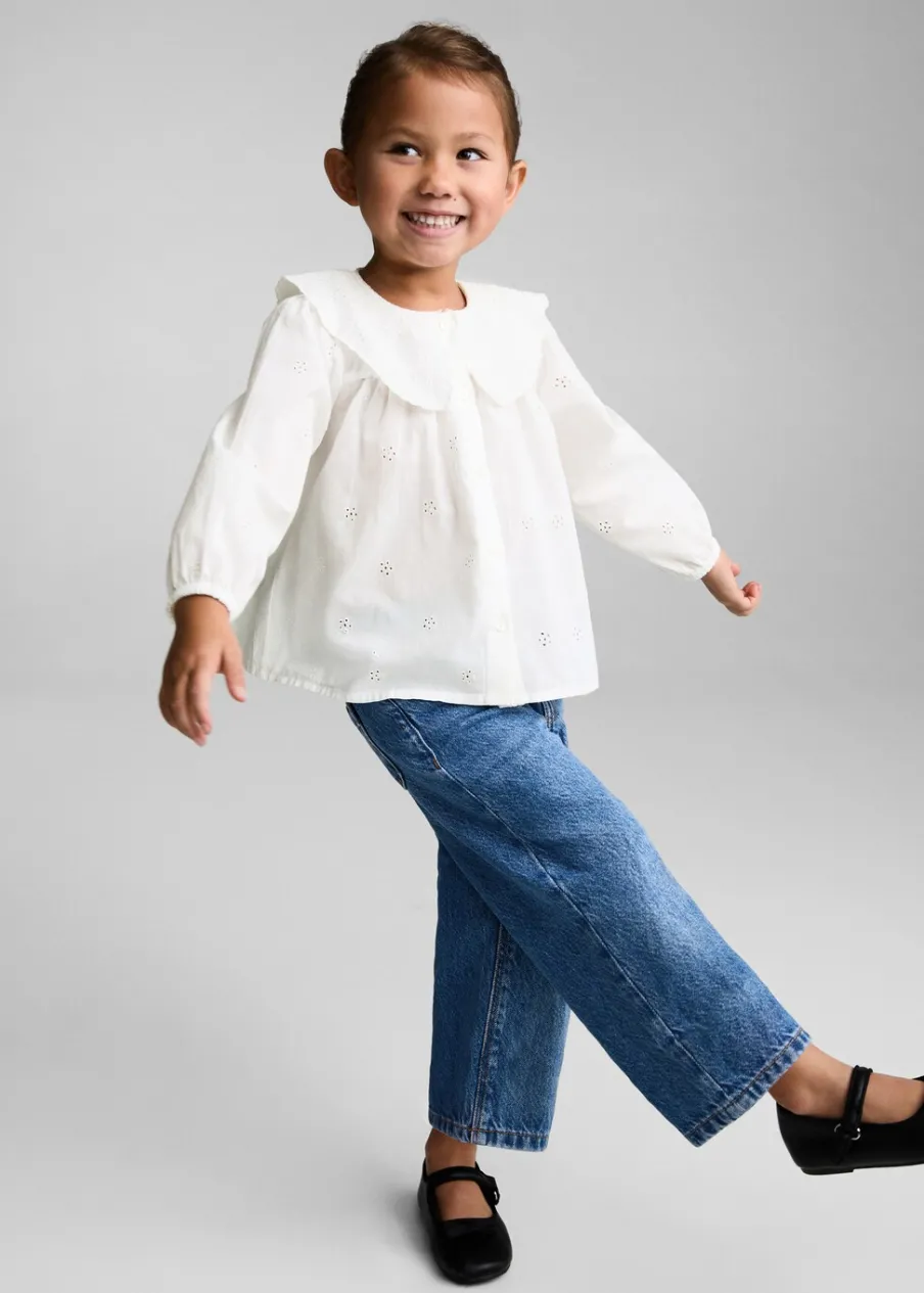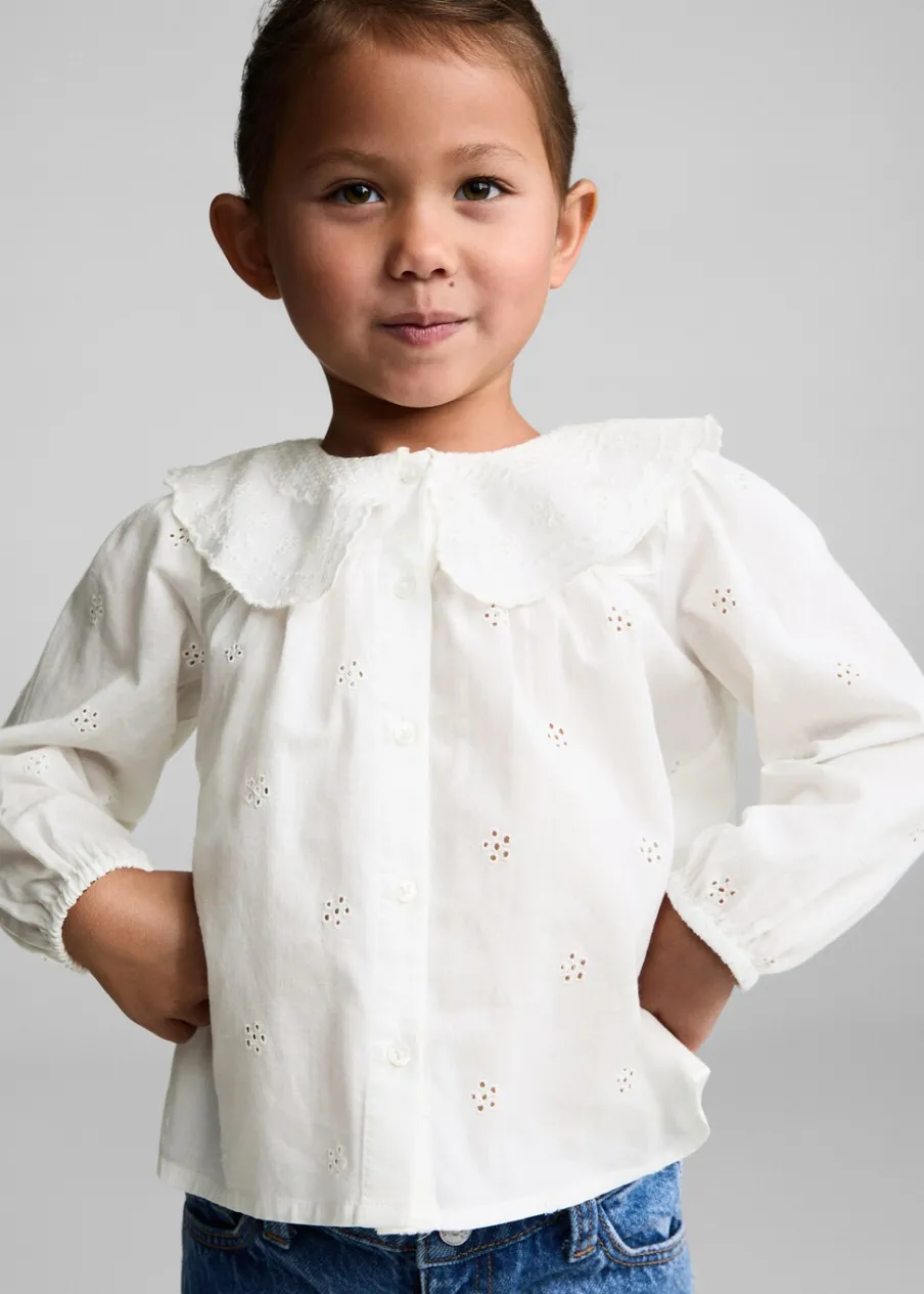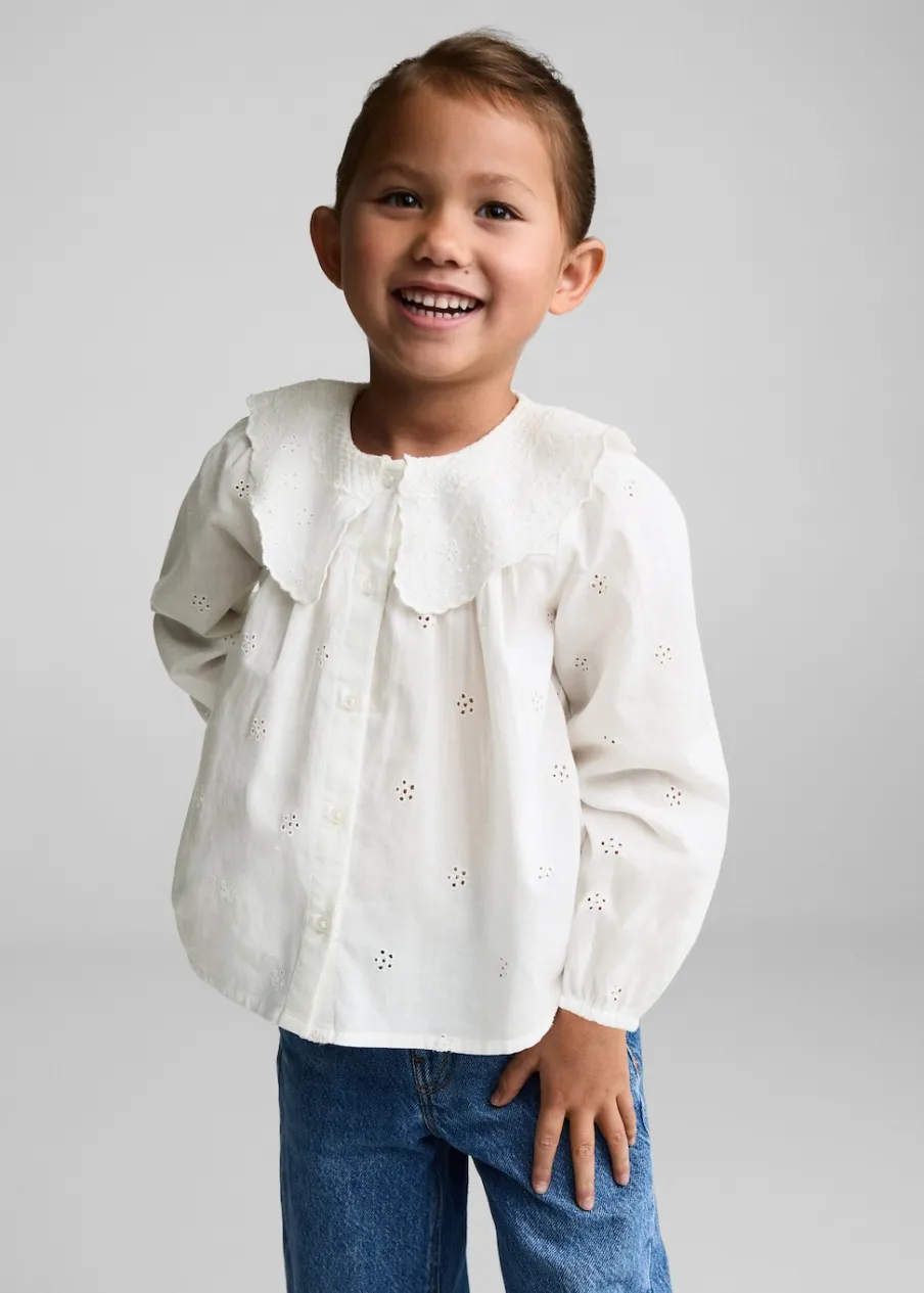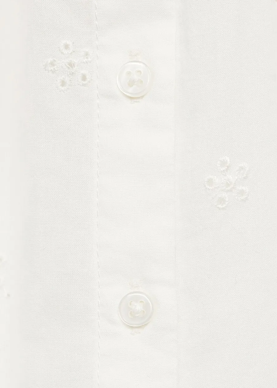 Bawełna 100%. Model prosty. Kołnierzyk bebe. Haftowane detale. Kwiatowy haft. Długi rękaw. Zapięcie na guziki z przodu.
