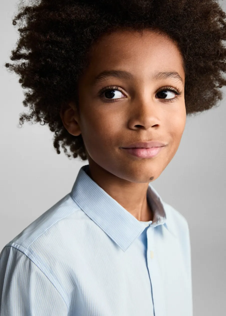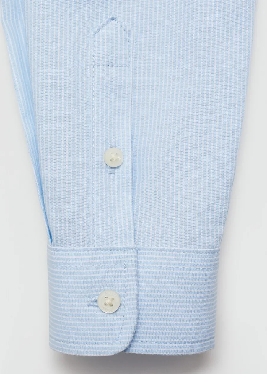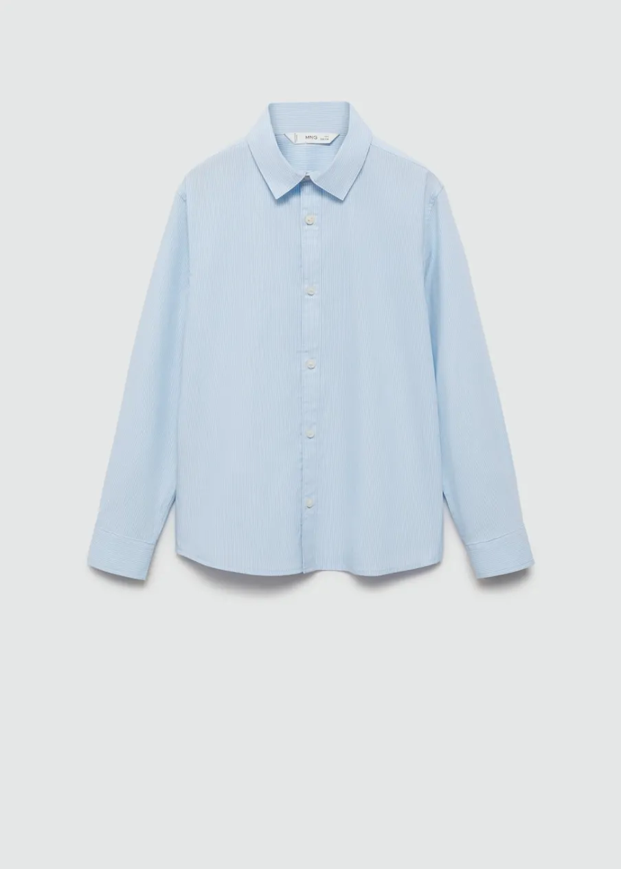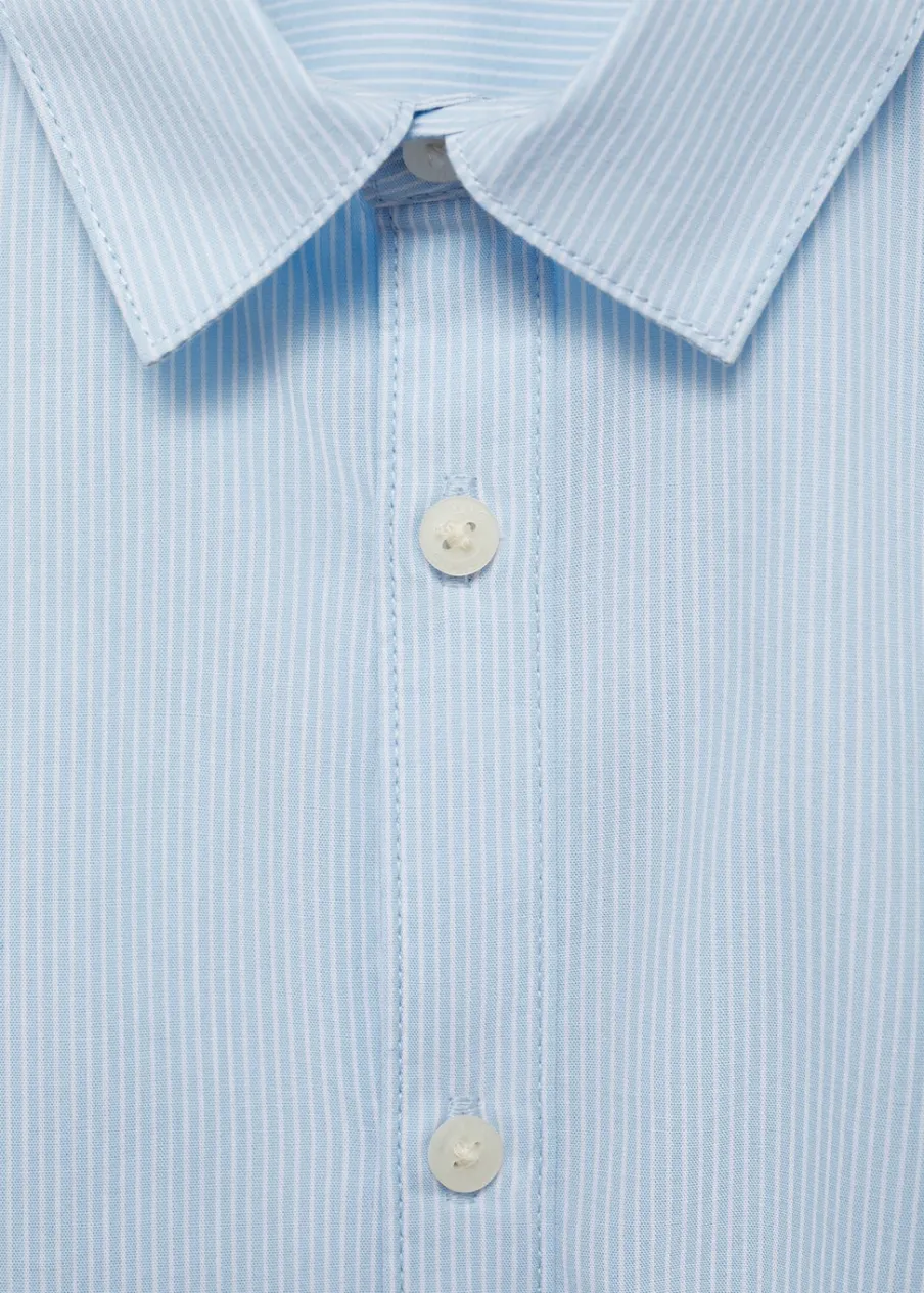 100% bomull. Model prosty. Wzór w pasy. Koszulowy kołnierz. Długi rękaw z guzikami na mankietach. Zapięcie na guziki.