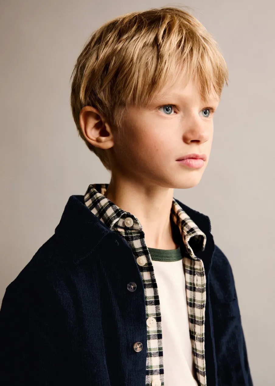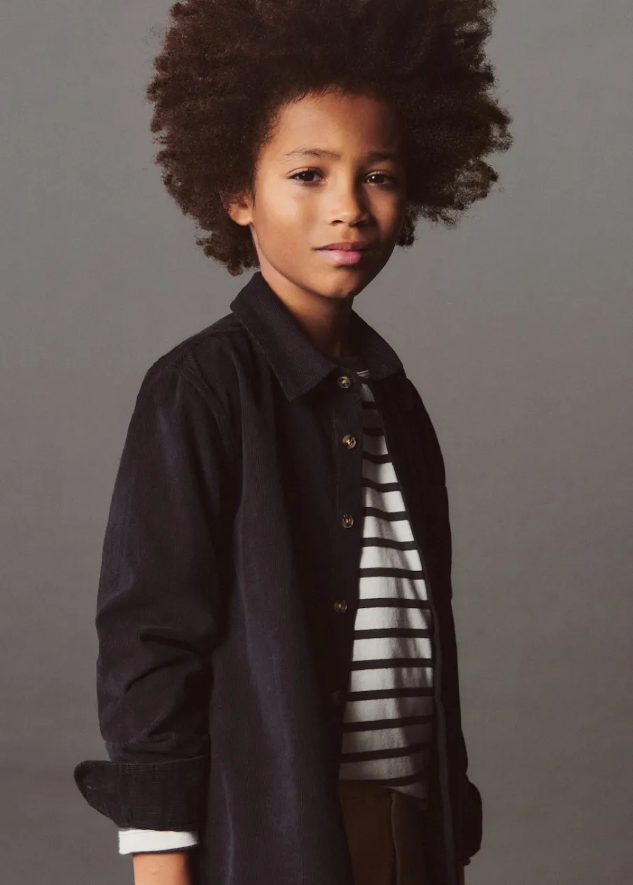 Kolekcja Powrót do szkoły. Sztruksowa tkanina. Kieszeń nakładana na piersi. Długi rękaw z zapięciem na guziki. Koszulowy kołnierz. Model prosty. Zapięcie na guziki z przodu.