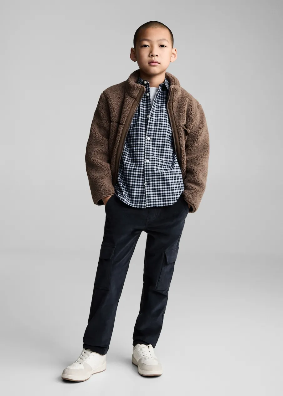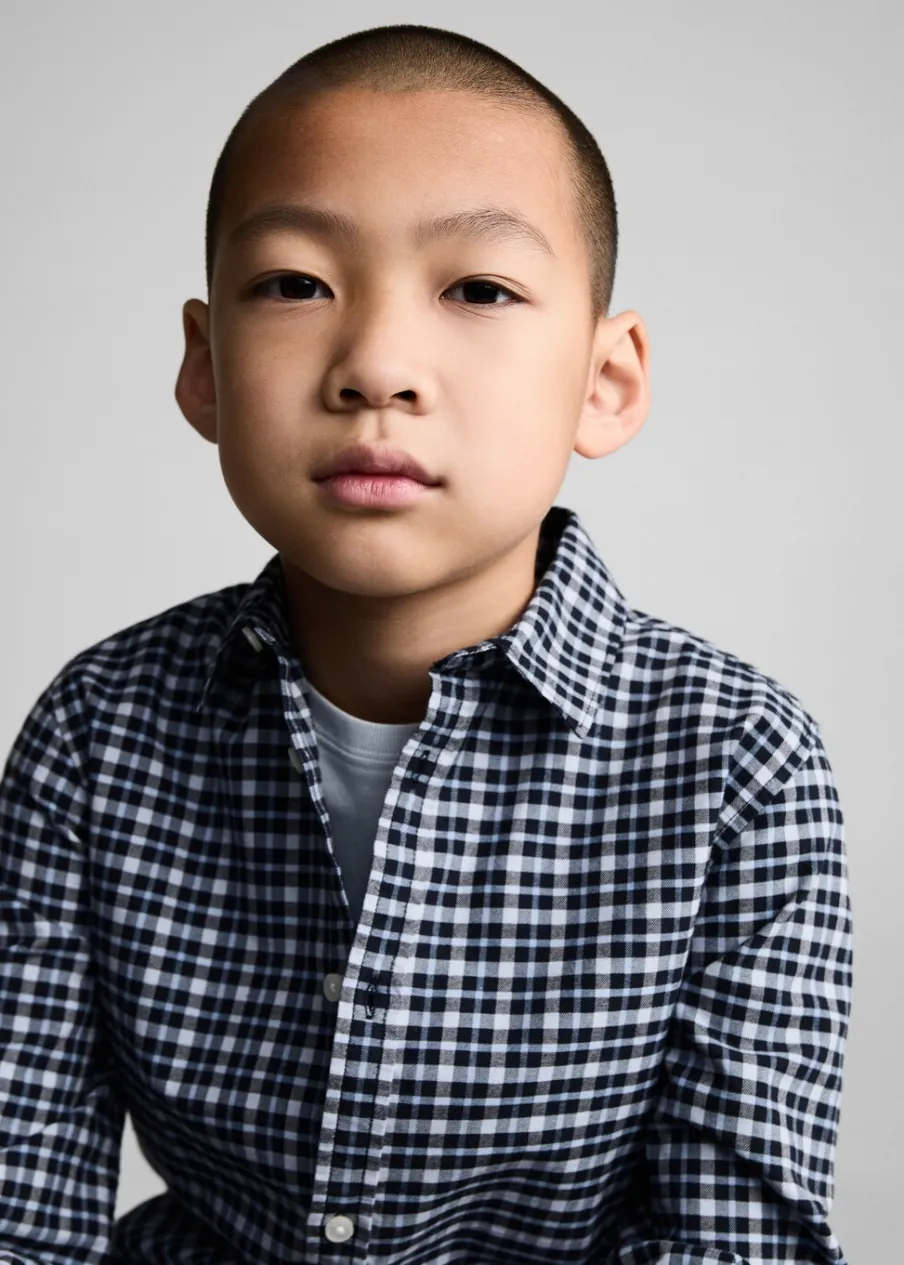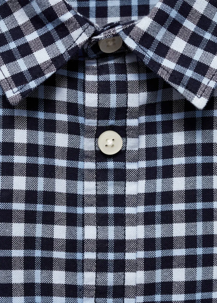 Bawełna 100%. Model prosty. Deseń w kratę. Koszulowy kołnierz. Zapięcie na guziki. Długi rękaw z guzikami na mankietach.