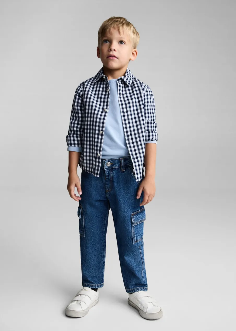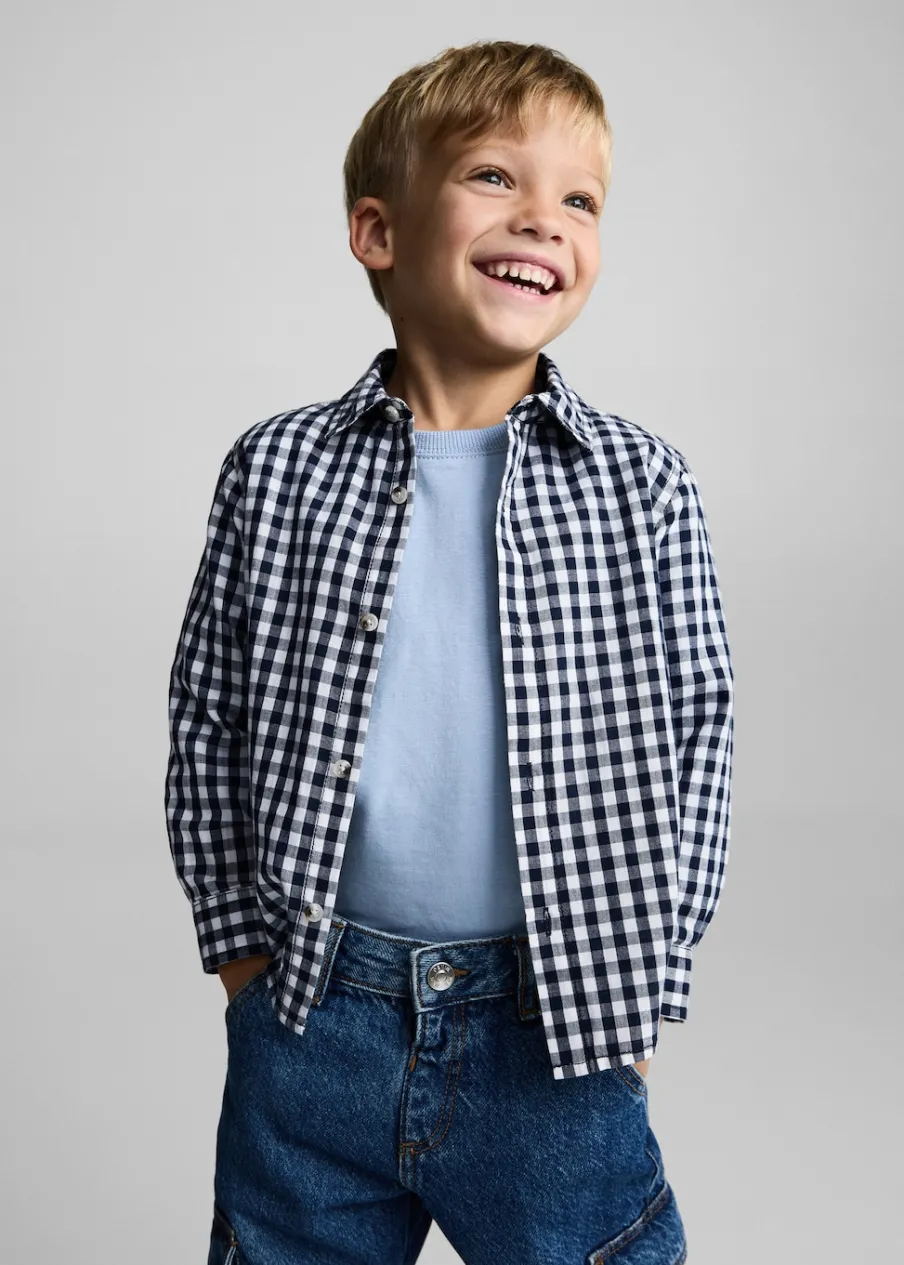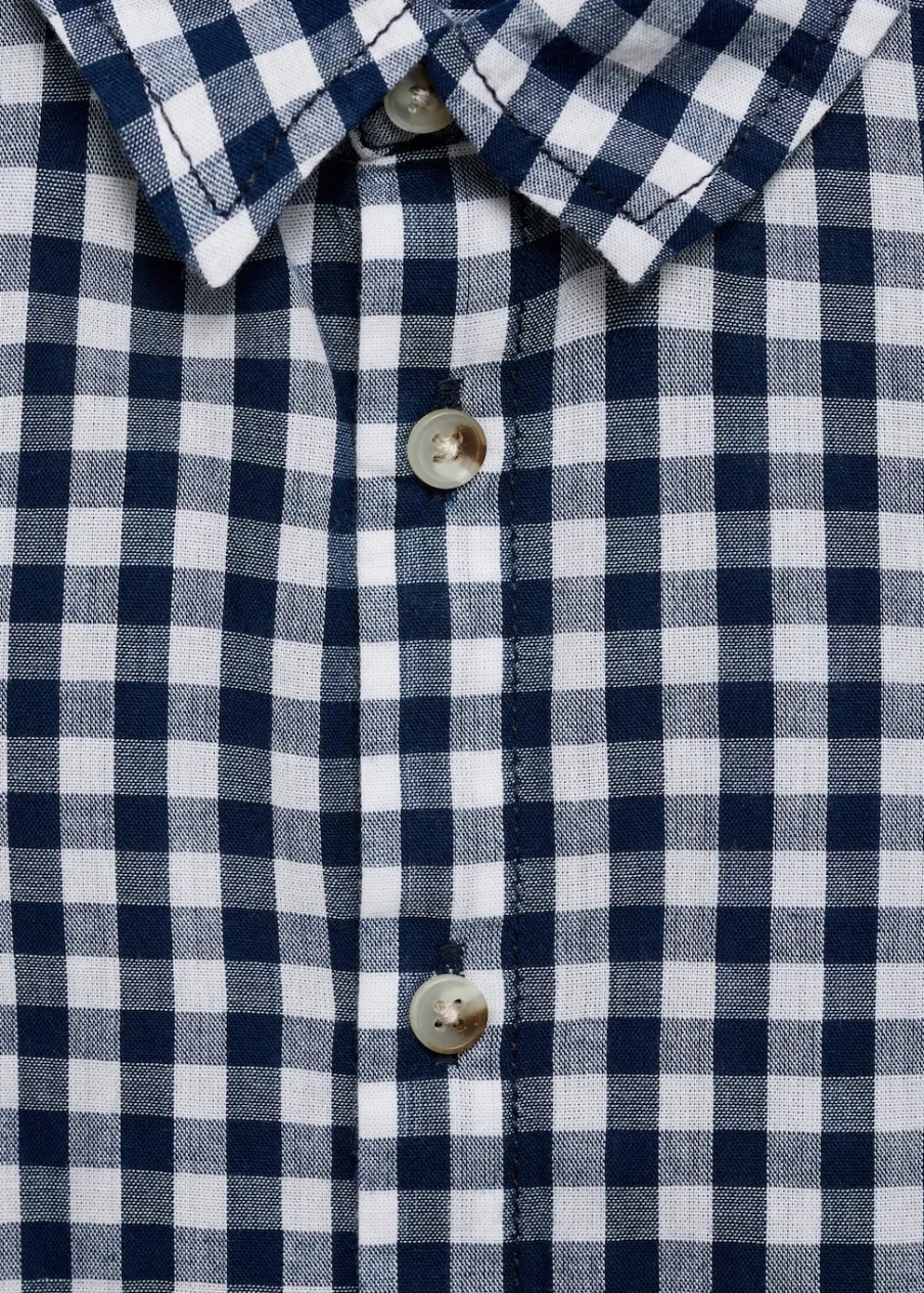100% bomull. Model prosty. Koszulowy kołnierz. Długi rękaw z guzikami na mankietach. Zapięcie na guziki. Wzór w kratkę vichy.
