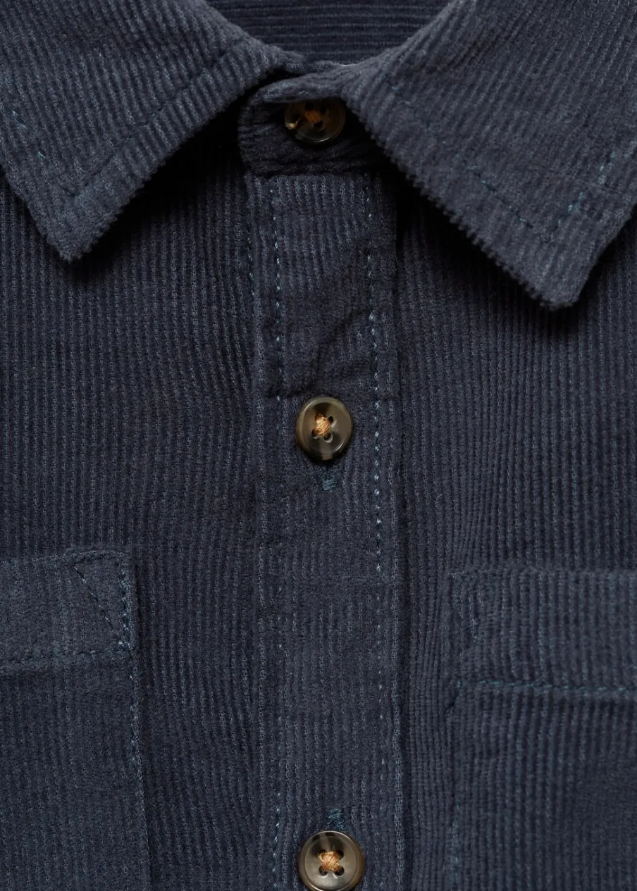 Powrót do szkoły. Sztruksowa tkanina. Koszulowy kołnierz. Długi rękaw z guzikami na mankietach. Dwie kieszenie nakładane po bokach. Zapięcie na guziki z przodu.