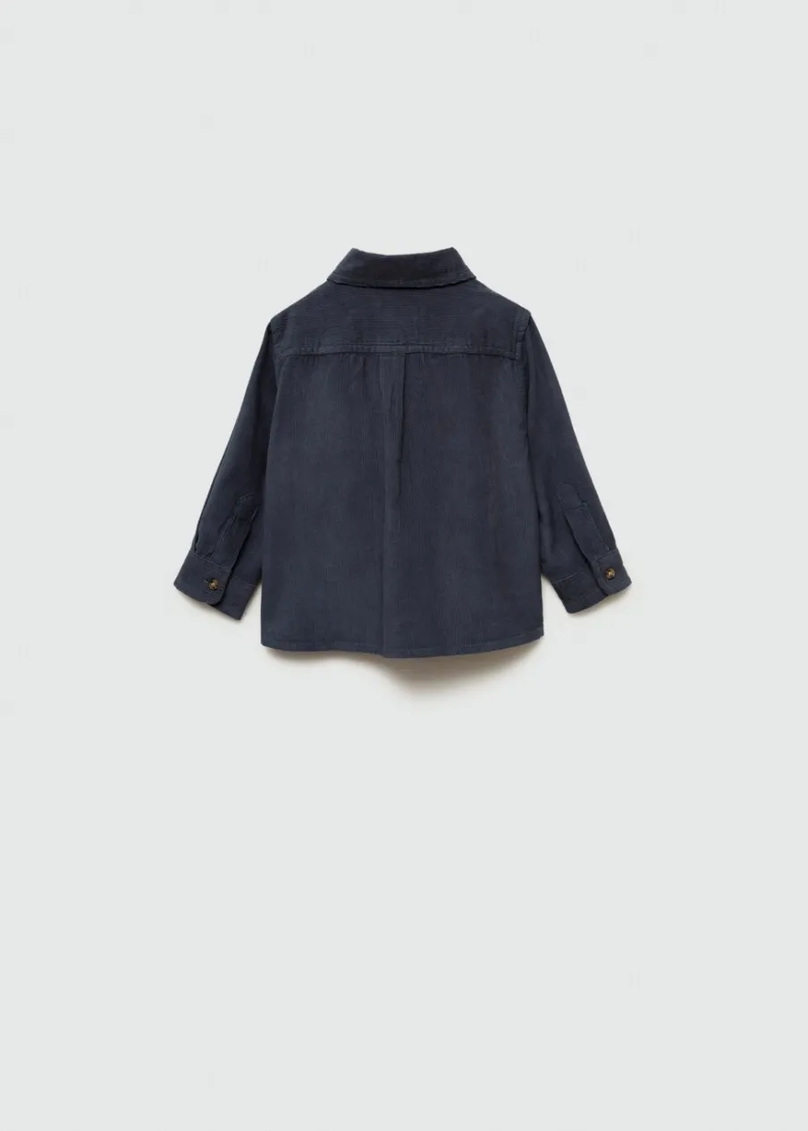 OpisPowrót do szkoły. Sztruksowa tkanina. Koszulowy kołnierz. Długi rękaw z guzikami na mankietach. Dwie kieszenie …