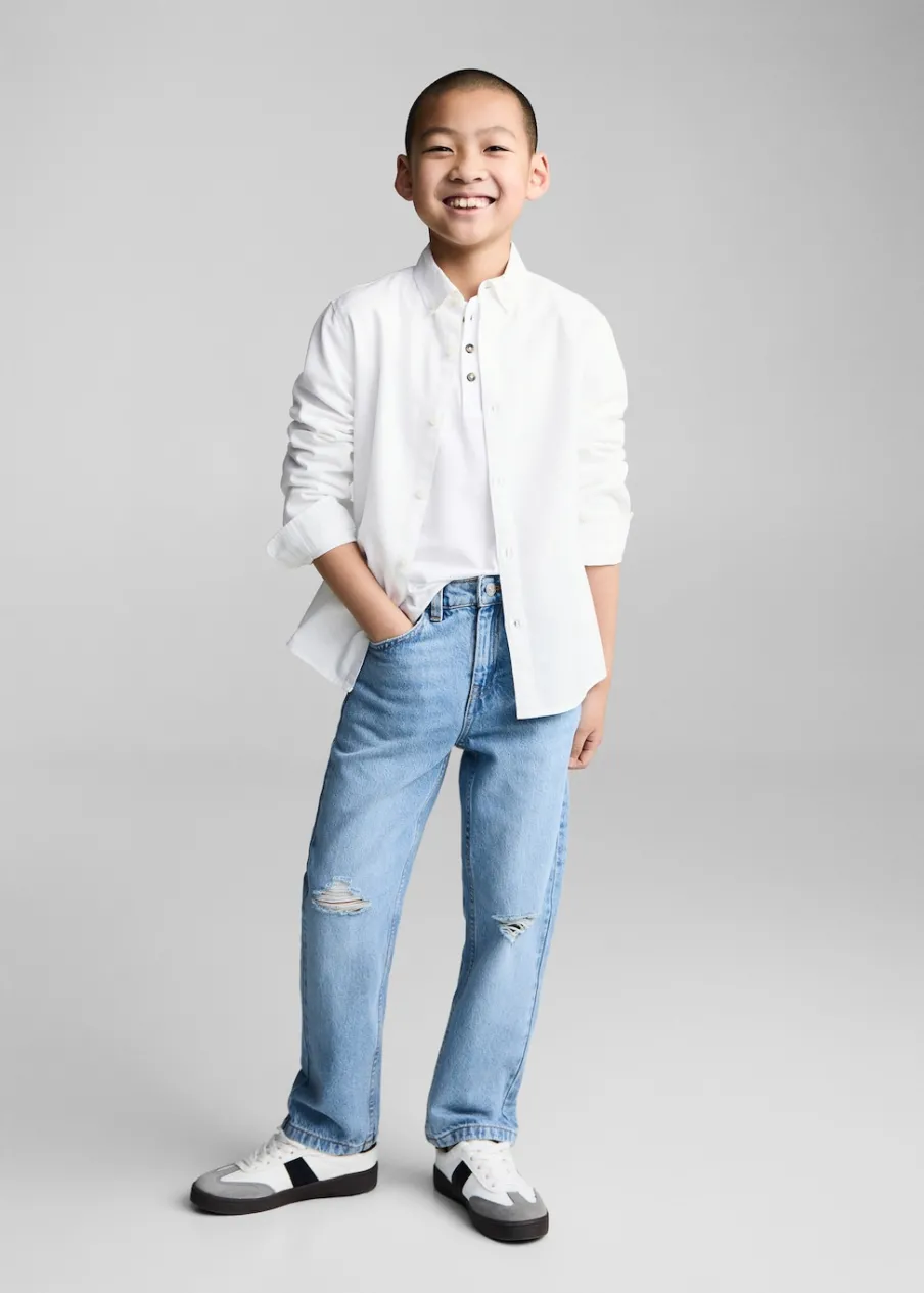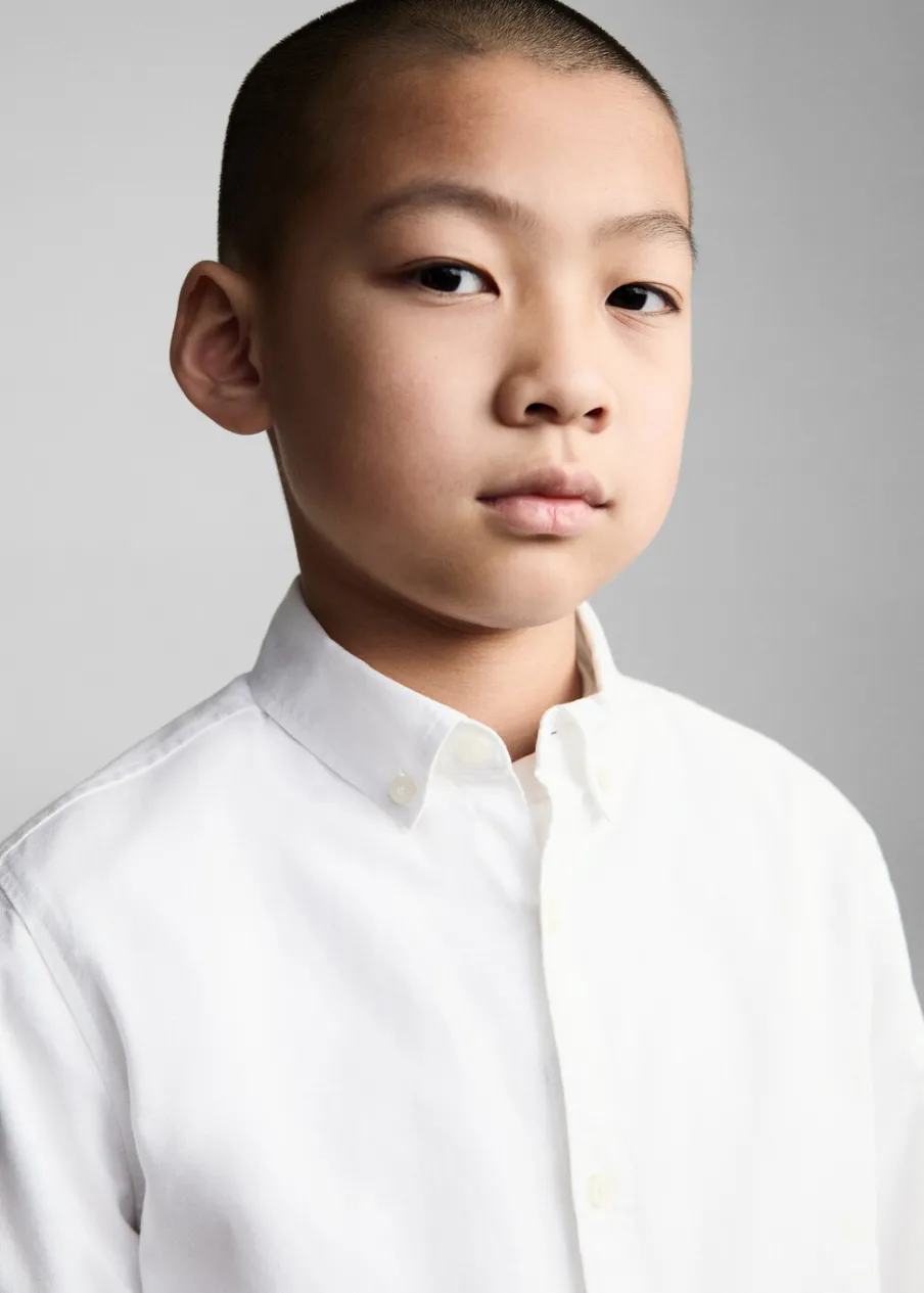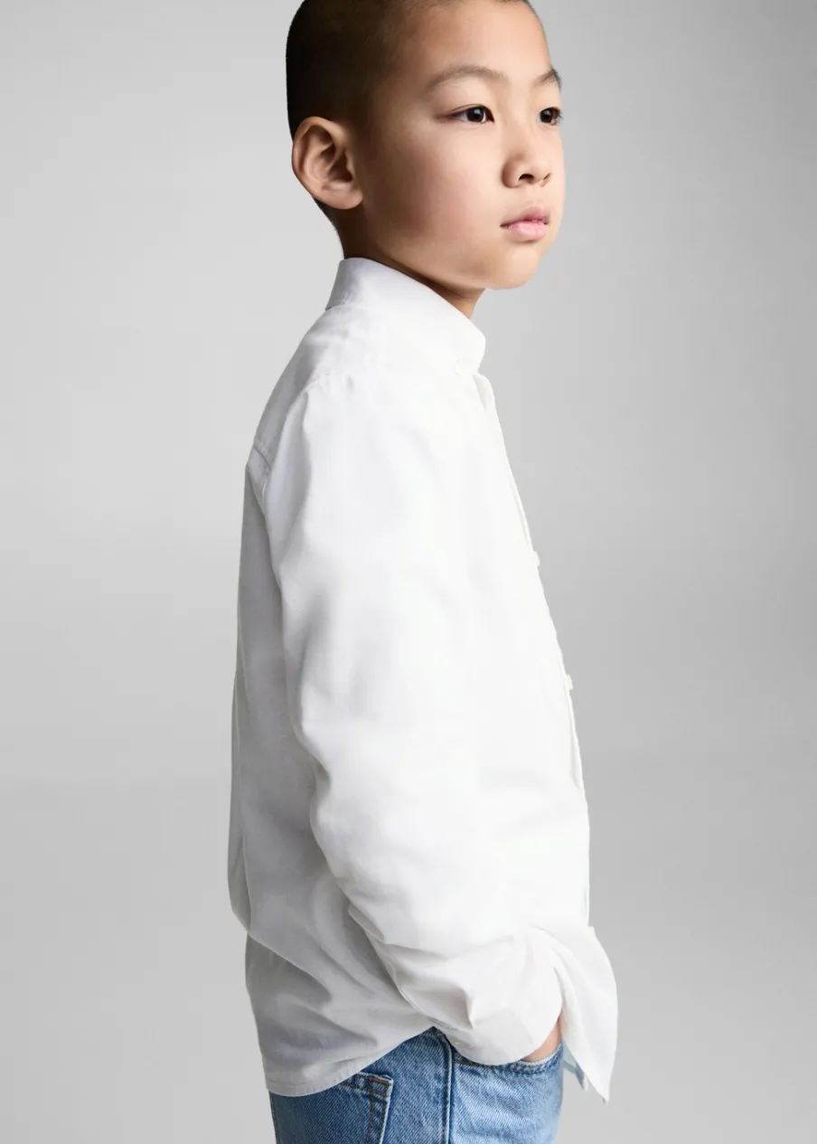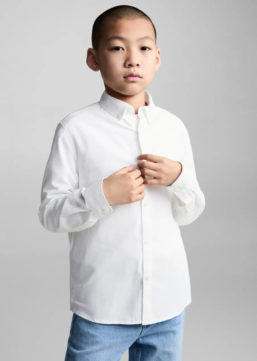 Tkanina z 100% bawełny. Tkanina Oxford. Model prosty. Koszulowy kołnierz. Mankiety koszulowe na guziki. Zapięcie na guziki z przodu.