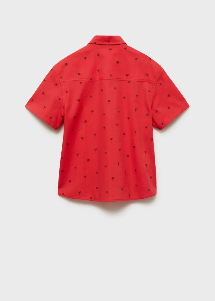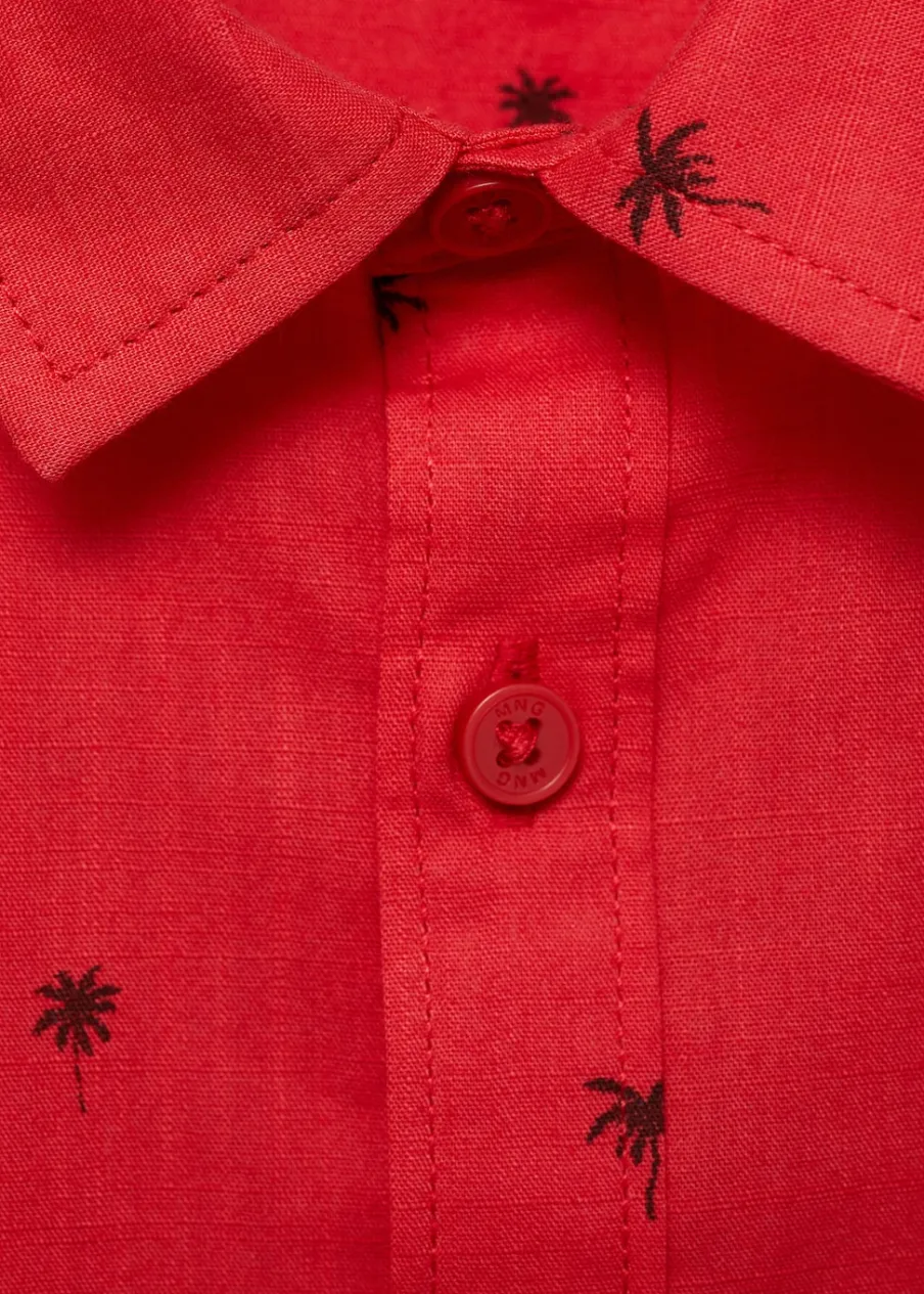 Bawełna 100%. Model prosty. Z nadrukami. Wzór w palmy. Krótki rękaw. Koszulowy kołnierz. Zapięcie na guziki z przodu.