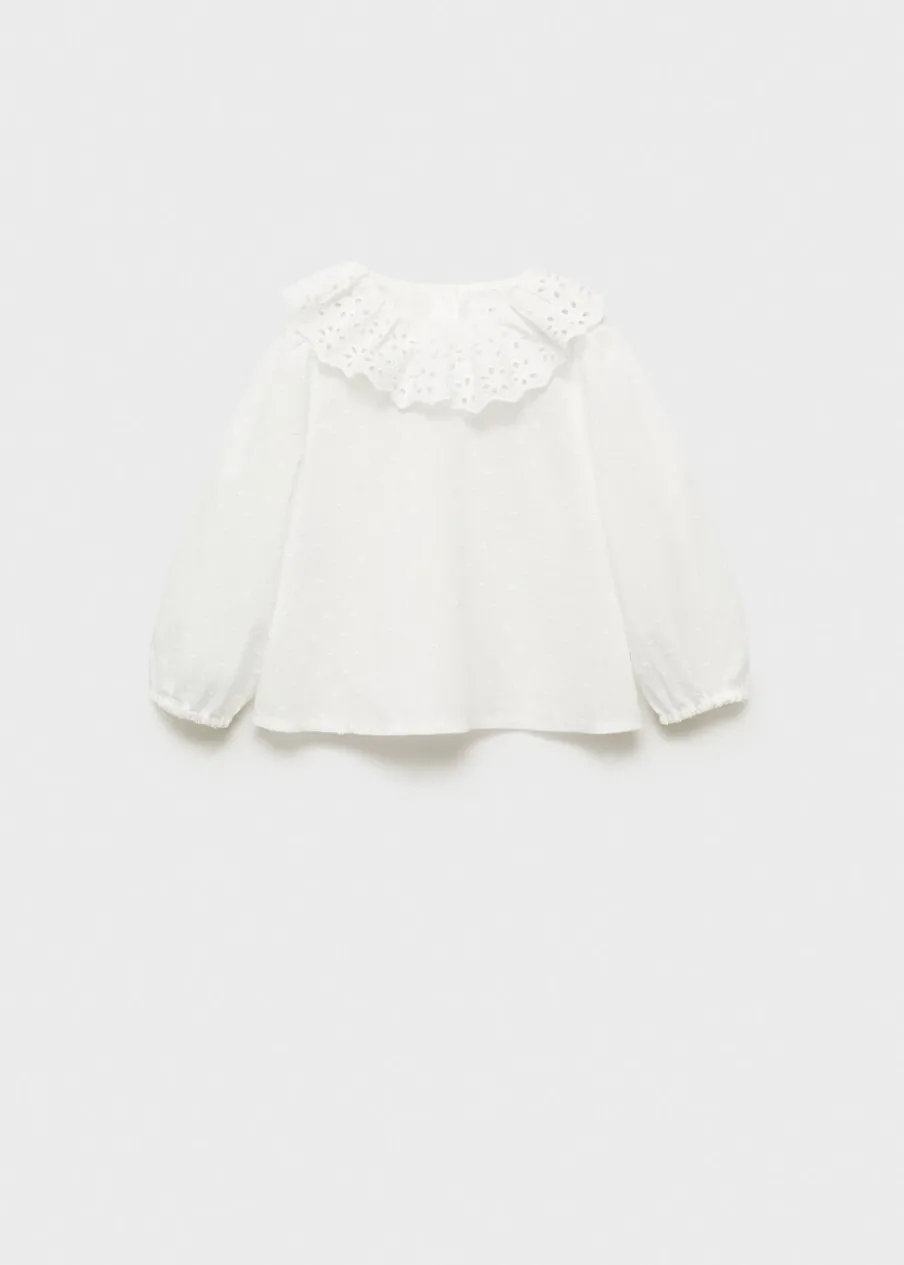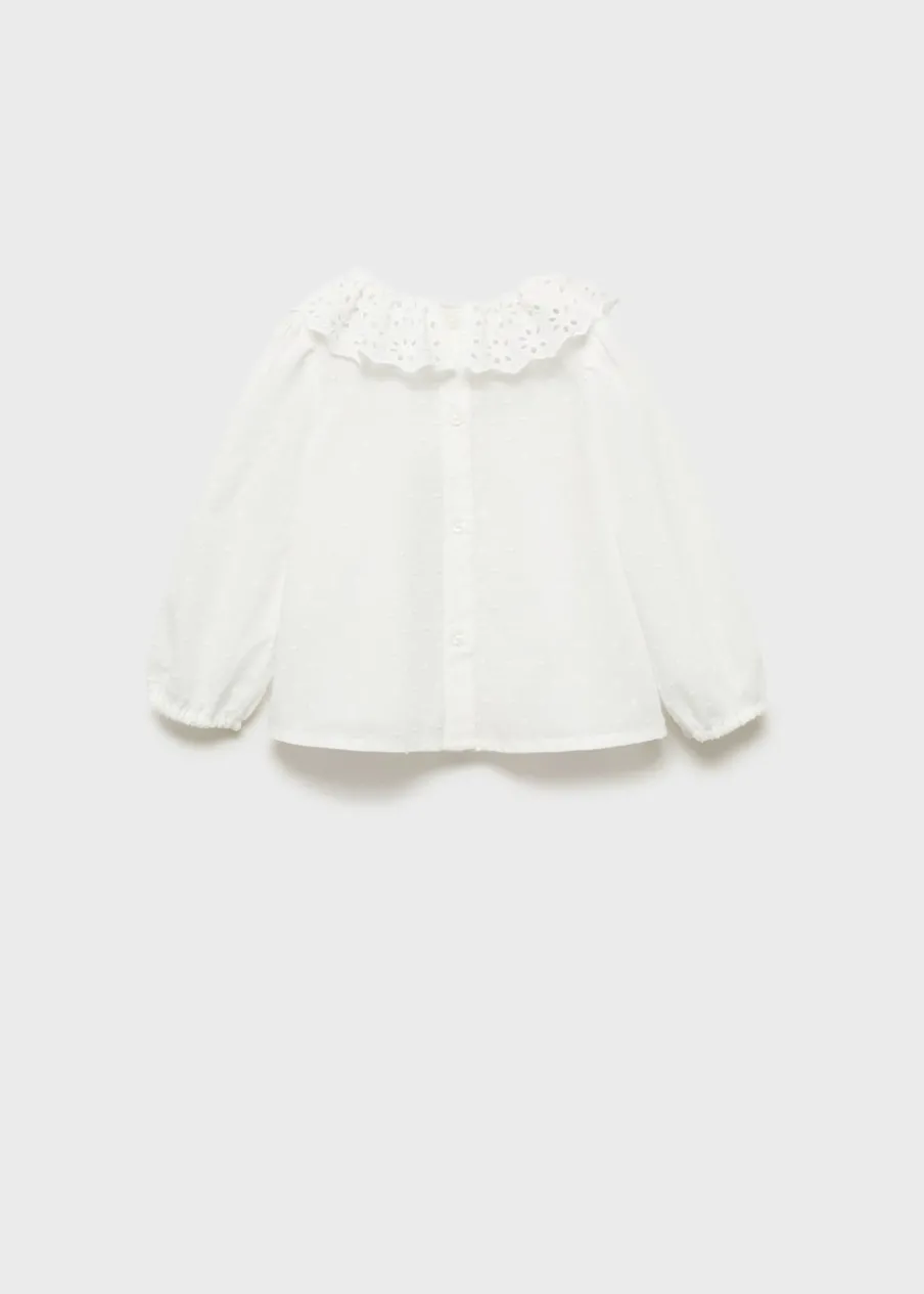 OpisTkanina z bawełną. Model prosty. Kołnierzyk bebe. Haftowane detale. Długi rękaw. Zapięcie z tyłu na guziki.