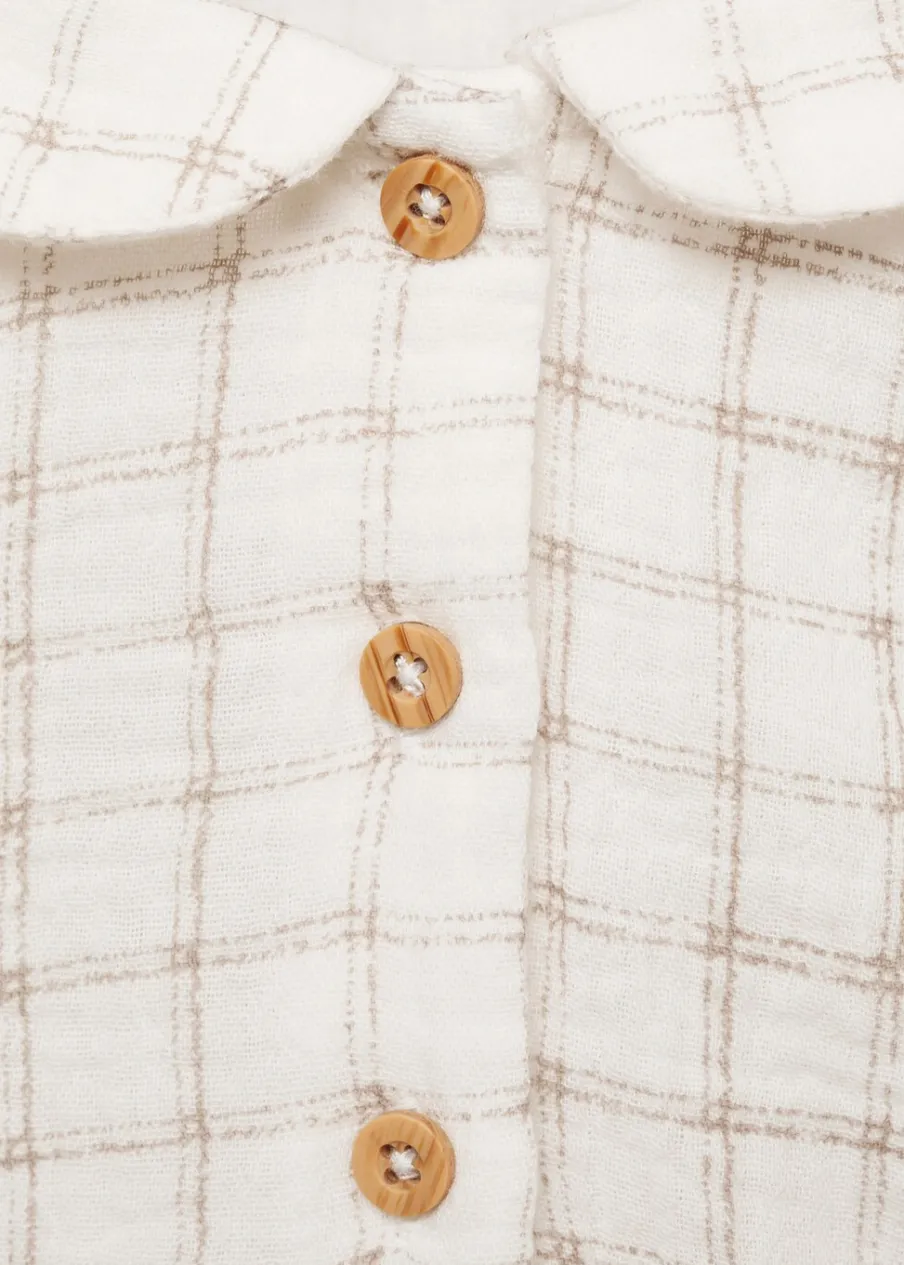 Opis100% bomull. Deseń w kratę. Model prosty. Kołnierzyk bebe. Długi rękaw. Zapięcie na guziki.