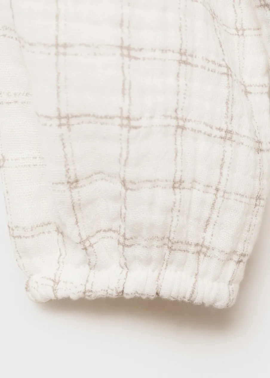 100% bomull. Deseń w kratę. Model prosty. Kołnierzyk bebe. Długi rękaw. Zapięcie na guziki.
