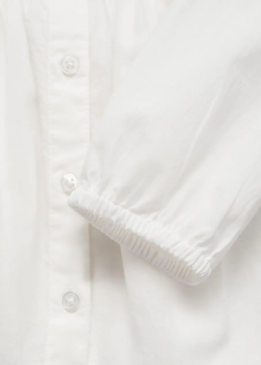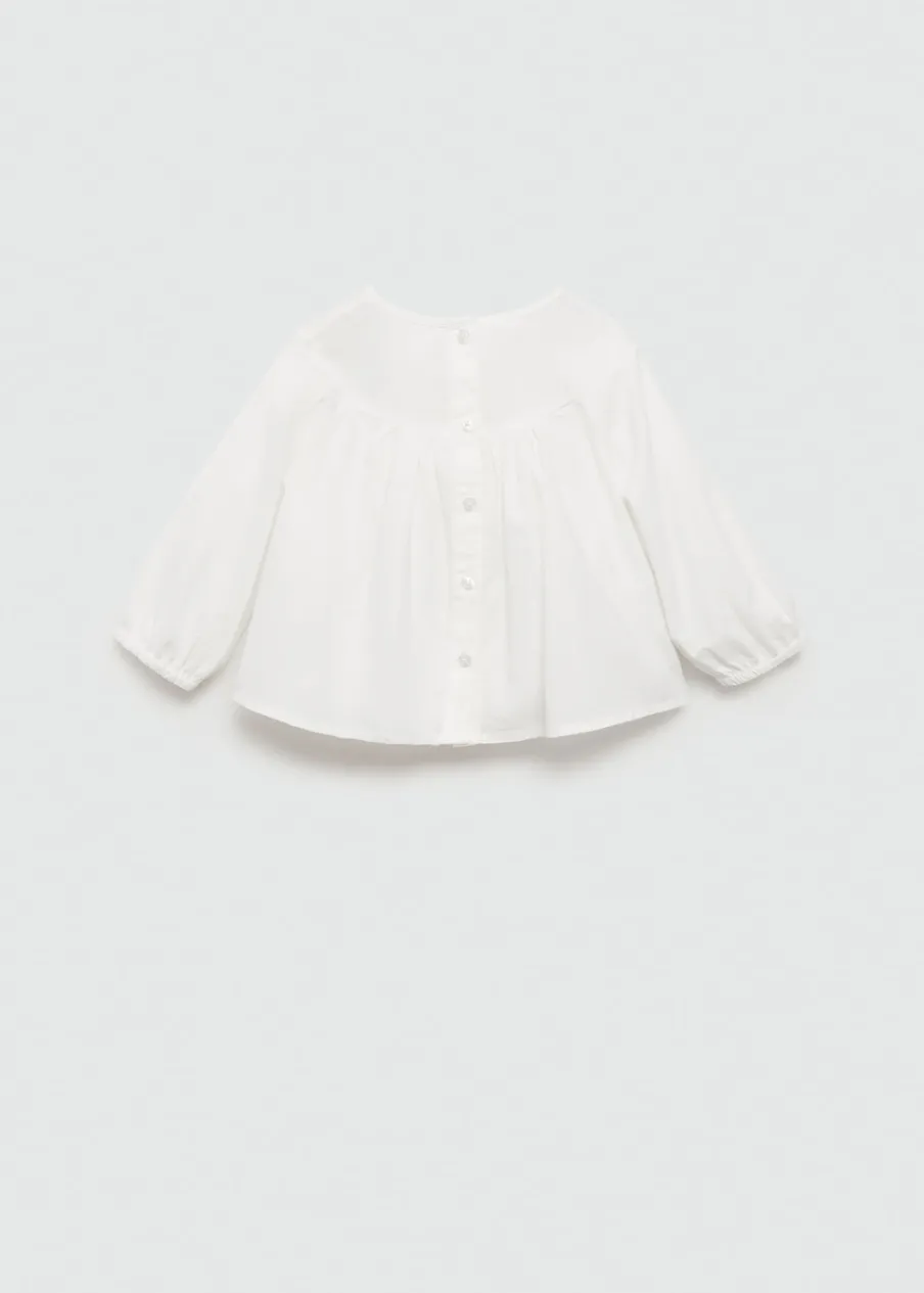 Bawełna 100%. Model prosty. Haftowane detale. Okrągły dekolt. Długi bufiasty rękaw. Zapięcie z tyłu na guziki.